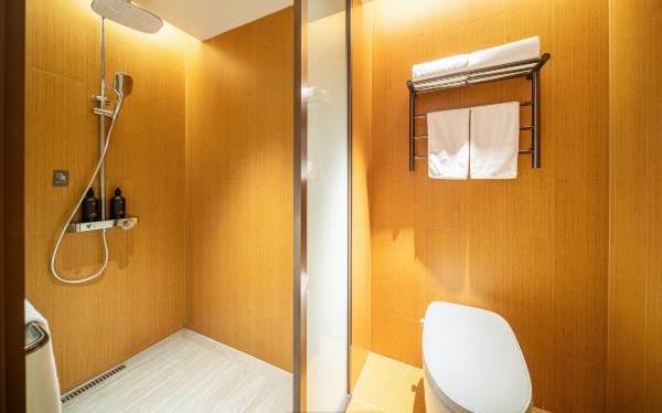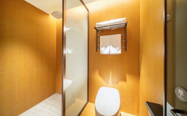 卫浴设施:浴巾、智能马桶、私人卫生间、毛巾、拖鞋、24小时热水、私人浴室。仅部分房间具备:、吹风机