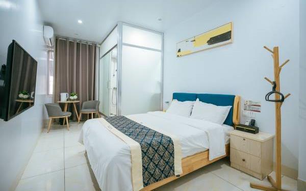 客栈位于崇武古城旁,沿海堤一条线步行可达。房间请了专门的设计团队进行装修设计。设计师根据崇武惠安女的服饰的颜色特点,依次安排在挂画-沙发-床上面,俨然将惠安女服饰隐藏于房间之中。所有空间都安装独立冷暖空调,保证夏不热冬不凉。房间都配有高清电视及高速WiFi,吃鸡都不用担心卡啦。还配有超赞CD机,休息的时候轻轻一拉,就能聆听美妙的音乐噢。大堂有自助厨房噢,想要露两手的小伙伴可以在厨房大展身手。大堂还有公共冰箱可供使用,房间内部暂无提供单独冰箱。房间内禁止炒菜,大堂有公共厨房,免费提供餐具厨具。使用后请清洁干净,否则视情况加收清洁费,正常50元起。大堂还设有投影区。洗衣房在走廊,免费提供洗衣液及衣架。观景露台位于5楼公共区域,可随时前往休憩。客栈虽小,功能完善。欢迎亲子游、周边游、聚会游、情侣游、闺蜜游等花式游客,我们还提供自助烤架噢。