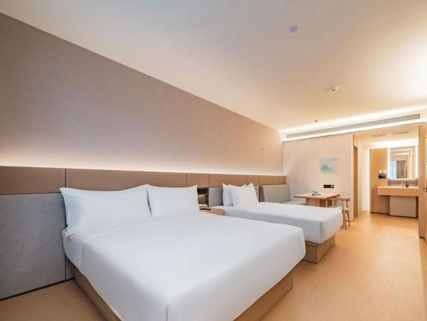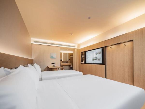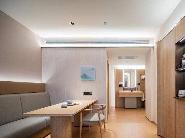 全季酒店隶属于华住集团中档型酒店,坐落于兰州市第五中学正对面,地理位置优越,紧邻兰州环球中心/兰州火车站/万象城商圈/兰州大学,商业繁华地带和多个景点,更是您旅途中休憩与探索的理想之选。 全季5.0是全季酒店的全新升级版本,融入东方美学,从苏轼词中的山水意境汲取灵感名为晓山青,大堂设有迎客松等元素,采用渐变色彩,营造出朦胧留白的视觉感受,弱化商业氛围,展现东方美学。全屋采用无主灯设计,定制“Hello 华住”唤醒语,4寸中控屏设置灯光分区,可触屏滑动或语音调节灯光亮度,也可通过语音控制窗帘/电视及空调,为了住客的便捷,也取消了以往的座机,更换为一键呼叫模块。全季5.0的早餐取消了西式早餐,新增了许多中式糕点和低糖蒸点,增加了燕麦奶和椰子水等,提供更加健康的选择。与之前的版本相比,5.0版本早餐不仅健康美味,还能给客人带来全新的用餐体验。 酒店大堂公区地面采用地砖,餐厅台面采用岩板,墙面采用竹木纤维板及石塑板等更天然、更易回收再利用的材料。客房内的洗手台采用升级的环保材料,使用新型植物纤维环保材料制作拖鞋,采用可降解、可再生的玉米纤维茶包及可降解环保垃圾袋等。 总之,全季晓山青以优质的服务/精致的餐饮,成为众多宾客心中的理想之选,我们期待您的光临,愿为您的每一次旅行及出差增添难忘的回忆。