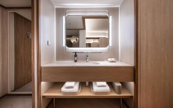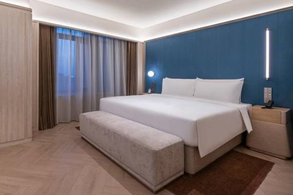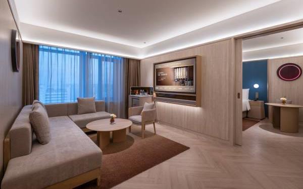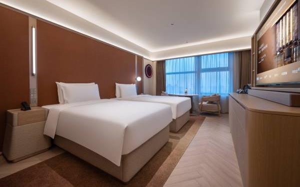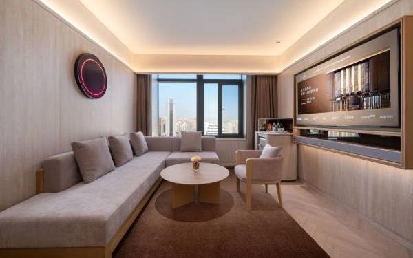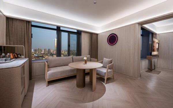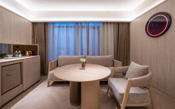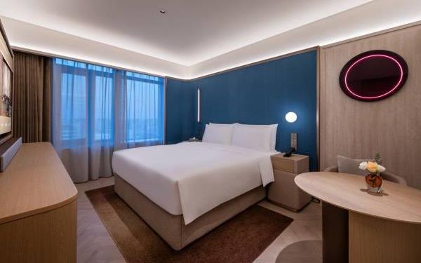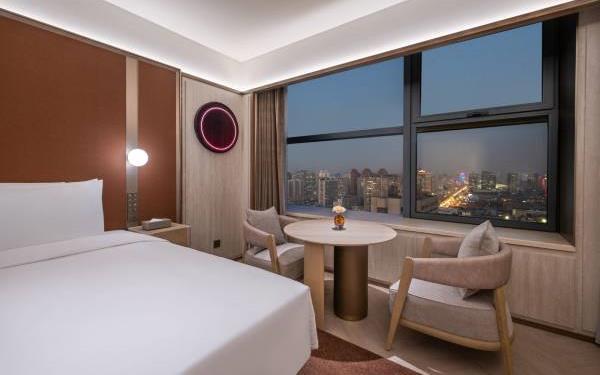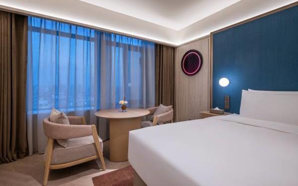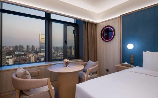 石家庄北国商城省博物院桔子水晶酒店,隶属于华住酒店集团旗下中高端品牌。由国外设计师全新打造,酒店位于河北省石家庄市长安区建设南大街5号。距离北国商城近,临近石家庄妇产医院以及河北医科大学。距离长安公园步行5分钟。附近有四大银行、石家庄火车站、勒泰中心、万象城等生活购物场所一应俱全。在新版水晶设计中,我们从“水晶”的特性涉取灵感,欲打造通透极简却富多层次气质的住宿体验。当水晶邂逅阳光,便有了七彩的绚烂。新水晶客房专注于空间和材质本身,全屋选用自然的浅木色。搭配流畅优雅的设计线条。沙发与墙壁配色一致,深蓝色\咖啡色背景板搭配同色系的窗帘,高级而有质感,墙壁玫红色装饰的点缀,颇具艺术气息。整个空间给客人感觉非常温暖温馨。温和花香配以罗勒清香的舒眠香氛、蕴含天然精油的法国Champs Fleuris山茶花系列香氛沐浴套组、双层缝制工艺的超柔亲肤浴袍、美国高端酒店御用——丝涟床垫、果冻触感的零压记忆枕,搭配柔软蓬松的羽绒被,给您的入住增添光彩提升入住体验感!脱离繁忙的工作与闹市,静享美好时光!