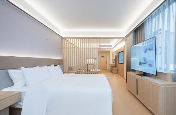 全季汕尾信利广场酒店是一家5.0版本的全季酒店。全季酒店作为中档酒店的标杆,始终秉承“为中国人设计,让外国人体验”的品牌初心,从东方智慧中汲取人文精神,从当代生活中提炼价值内涵。不同地方的审美,其本质都是在模仿一方水土的大自然。西方人讲的是风格,结构和逻辑,全季5.0的设计升级中做了许多渐变的色彩在里面体现中国人的留白和意境感。升级后的全季5.0不仅将苏轼词中的山水意境搬进了酒店,带来更为当代、写意的审美满足,更为每一位步入全季的客人营造出其独有的人文感知,在【但远山长,云山乱,晓山青]的豁达诗意中觅得一山一水隐世的住宿体验。