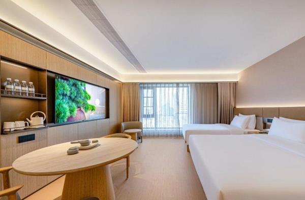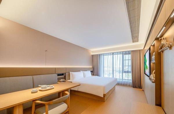 全季酒店隶属华住集团旗下中端酒店品牌。以“温、良、恭、俭、让” 的待客之礼融入人文生活态度,在产品、空间与服务中打造全季生活方式,从自然中获取灵感,期望宾客在入住中获得心灵的回归,放下一切,在「自然·而然」中获得一场身心净化的体验。 全新5.0产品-全季晓山青,在设计上传承了品牌一直以来的东方人文,但在外化的体现上,朦胧留白的视觉感受、人文意趣的艺术作品、好闻的禅茶香氛、自然的音乐,传递出了一种更写意的审美意趣。让每一位住客能够在走进全季的一刻,回归到一种松弛的状态,享受到一种独属于中国人的、更高级的美。