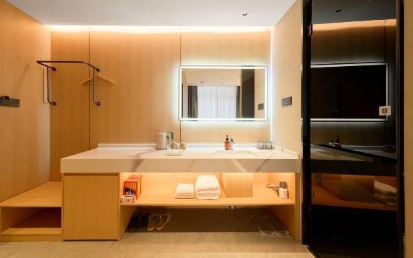 卫浴设施:淋浴、私人卫生间、毛巾、拖鞋、24小时热水、私人浴室、浴巾、雨淋花洒喷头、智能马桶。仅部分房间具备:、吹风机