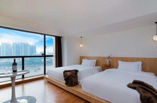 广州微丽王室酒店地处广州市越秀区广州市市中心,坐落于美丽的珠江边,濒临北京路步行街;距离地铁6号线团一大广场站B口约340米,距离北京路商业圈步行约10分钟;地处北京路繁华商业街,地道的各式餐饮让您流连忘返;酒店坐落在美丽的珠江边,周围旅游景点众多,天字码头夜游,北京路步行街,一德路圣心大教堂,中山图书馆,等等步行约5-20分钟均可达。酒店精致简约的装修风格,柔软的大床让您享受到家的感觉,全部无菌消毒让您住的放心。本酒店的冷暖空调,热水24小时提供,房间配备:大尺寸小米液晶电视,有线网络电视,免费百兆光纤宽带,电吹风等等。另外房间内的氛围灯,可调节自己喜欢的颜色,让您在入住的时候,体验到不一样的感觉!