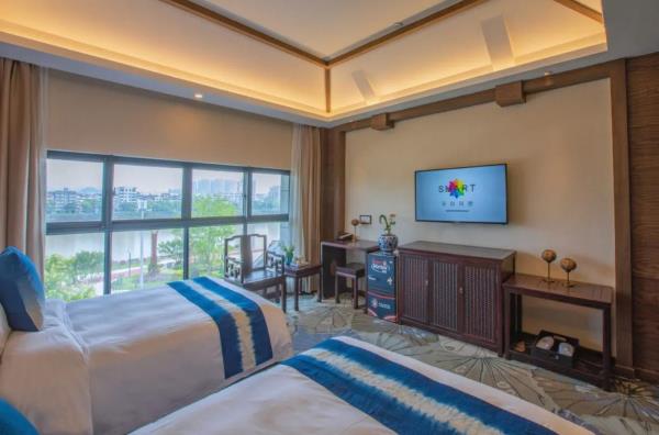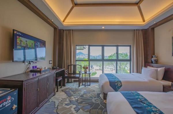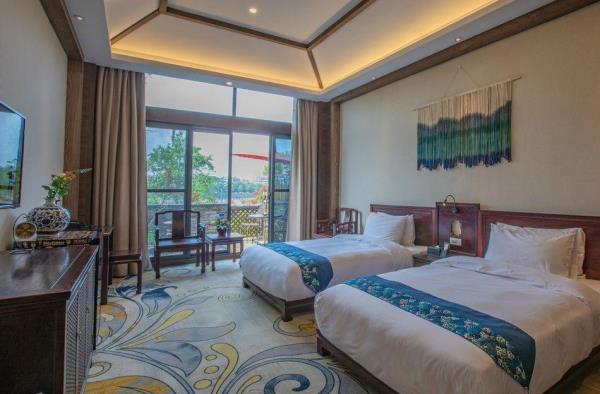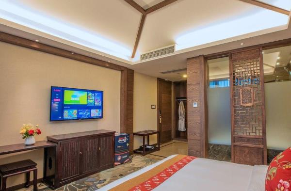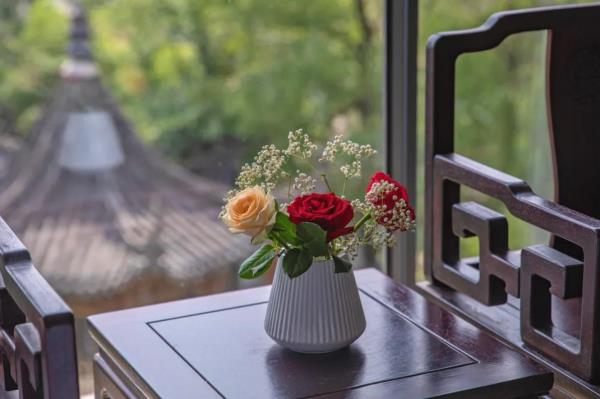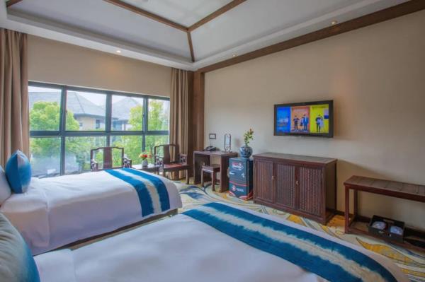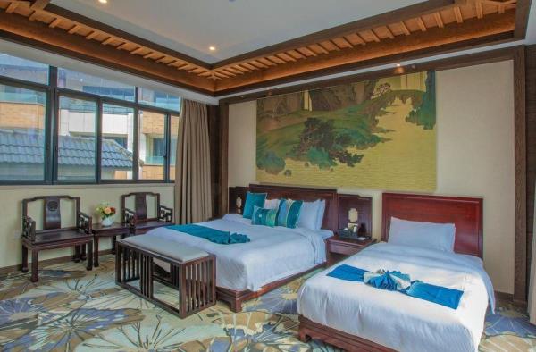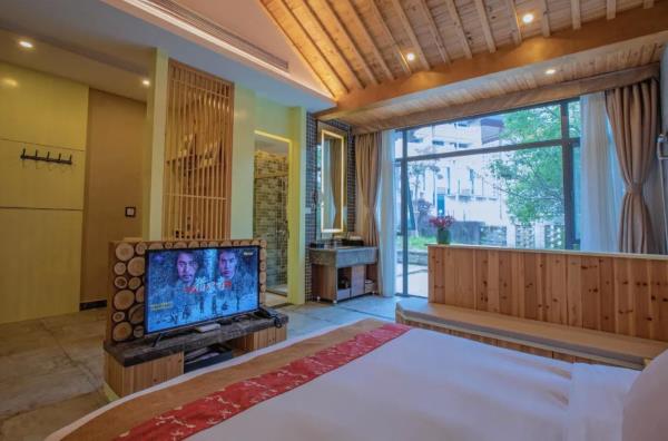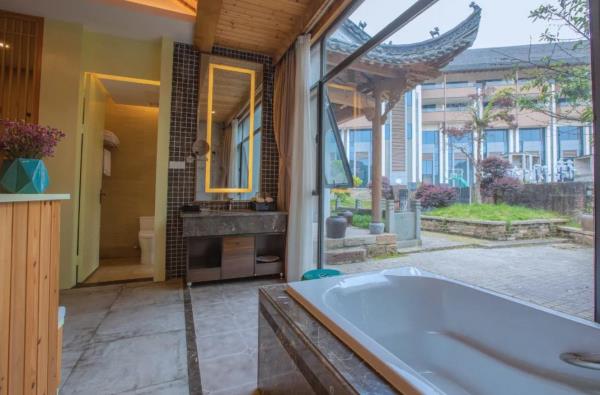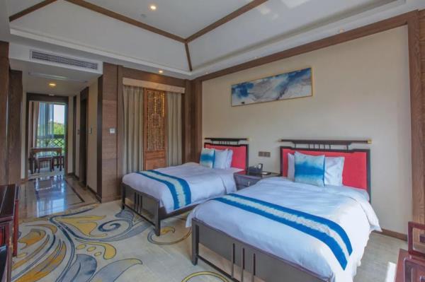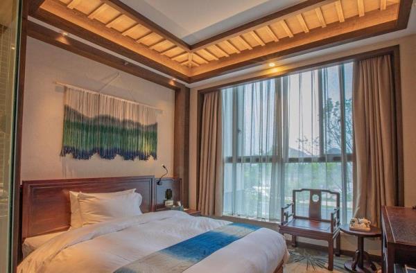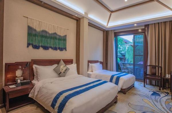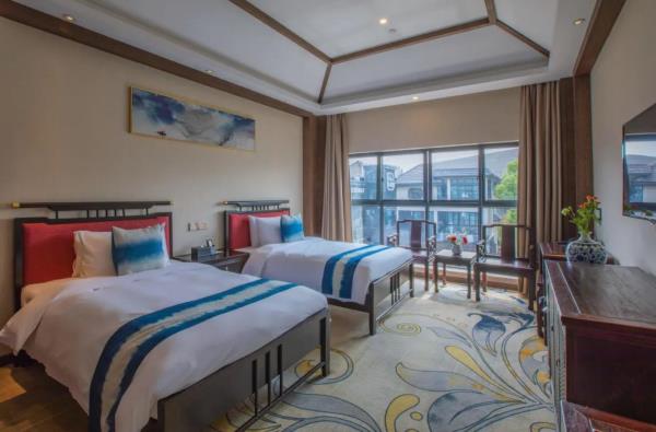 昱见·徽缦园林度假酒店地处风景秀丽的新安江畔——南滨江西路。这是一家按徽派建筑设计的酒店。为满足各位宾客亲近自然,品味精致生活的体验,设计依托黄山独特的风景和生态环境,借助亭、台、楼、阁、江和湖搭配,俨然是一座徽派博物馆。黄山德观徽缦酒店徽州山川风景之灵气,融中国风俗文化之精华,风格独特,结构严谨,雕镂精湛,不论是村镇规划构思,还是平面及空间处理、建筑雕刻艺术的综合运用都充分体现了鲜明的地方特色。这里有舒适优雅的环境,传统的中式建筑风格底蕴丰富,内含深广的徽派文化,必将赋予每一位贵宾独特体验。