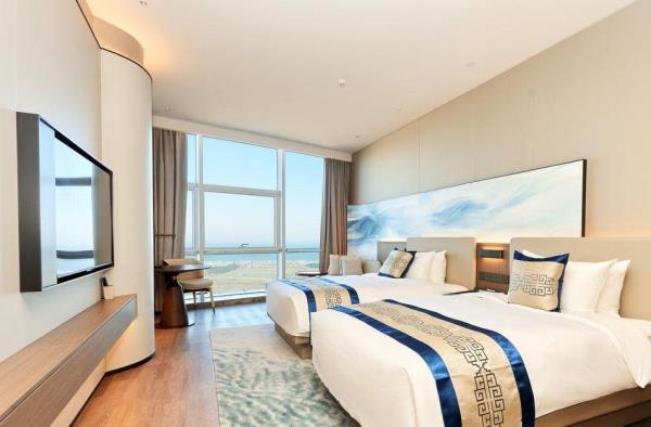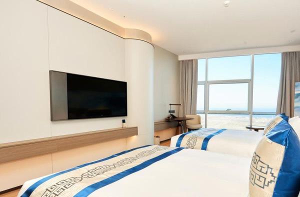 酒店座落于蓝色药谷,生命岛北岛,是蓝色药谷生命岛园区"一区三园"产业生态体系中高端研发及生活配套区至关重要的一部分,是国有企业的权属酒店。酒店位于烟台牟平区滨海东路198号,滨海东路以南、东海路以西。酒店拥有高级房型、豪华房型及汇享房型客房365间,酒店南眺昆嵛,北望岛海,地理位置独特优越,视野开阔的山景房与海景房并存,可以亲自感受大海与高山的壮丽恢弘。距离重要交通枢纽牟平高铁站驾车约7分钟;烟台站驾车约50分钟;蓬莱机场驾车约1小时。百万流量明星打卡地,高颜值网红地标,在酒店的云端可与万千期盼下的观众一同见证破晓,领略雷光闪烁的美好,感受被赋予无限能量和充满希望的瞬间,向阳而生,勇敢追梦。