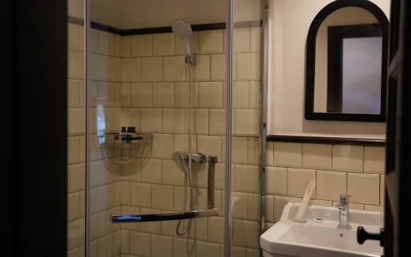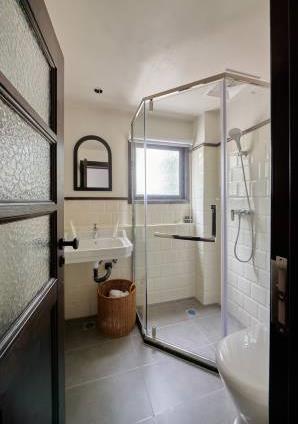 卫浴设施:浴巾、雨淋花洒喷头、淋浴、私人卫生间、毛巾、拖鞋、浴室化妆放大镜、24小时热水、私人浴室。仅部分房间具备:、吹风机