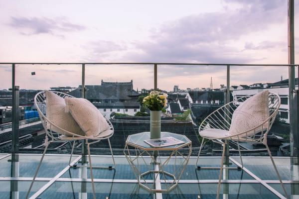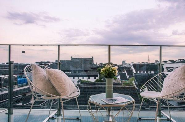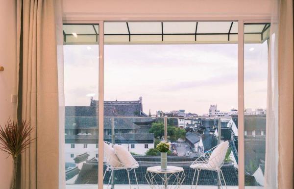有四层,很干净,装修比较新,实物和网站图片一致。工作人员提前一天联系确认了路线,也提醒我们预约了苏博拙政园狮子林,很贴心。上午到得早,行李寄存在前台我们就去吃吃喝喝逛了,中途房间提前安排出来也给我们发了消息,入住的时候包啊箱子啊都搁房间放好了。其他的不说,真心爱了这个阳台,有风的夜晚不能更惬意了,大家都睡了,我好像有点醉了。 棠隐2019-09-04