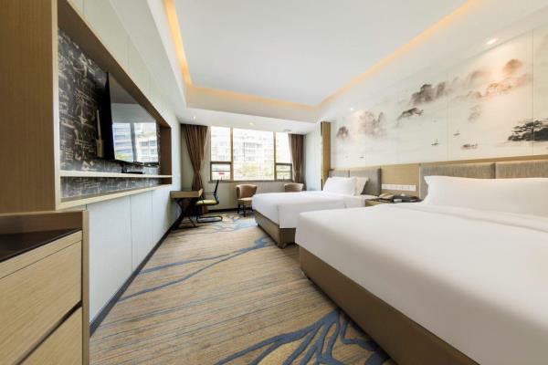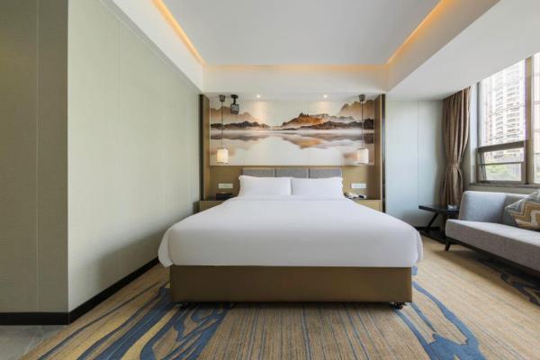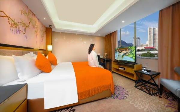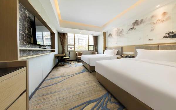 我们酒店位于江门市蓬江区迎宾大道中1号,生于闹市,静在独栋、少干扰、专注于住宿的轻奢式酒店。【舌尖】 咖啡饮品店4家、广式茶楼3家、便利店和餐饮店多家;【悠悠】鸡爪山,利和广场、幸福里、五邑大学、国金广场、东湖公园、江门中心医院等。 【房型】酒店多间客房,大床房,双床房,三床套房,电影房,棋牌套房供您选择。 【设计装修】酒店四季设计新颖,装饰豪华,布置温馨,宽敞双层中空玻璃大窗; 【设施设备】光纤千兆网络入房间;酒店七楼为空中花园、餐厅和日光浴区,以及自助洗衣、烘干服务和健身房;同时配备智能机器人,充电桩,免费停车场,为您的差旅生活提供便利。 【餐饮】酒店提供丰富的中西式自助早餐,原磨豆浆和手工点心回归原生生态。 【商务&会友】店内大堂休闲区宽敞明亮,亦是您休闲、会友的好地方 【小美期待您的到来!】
