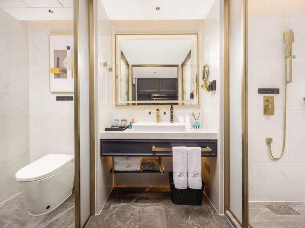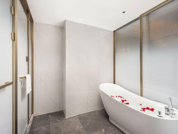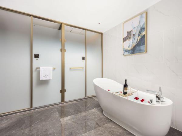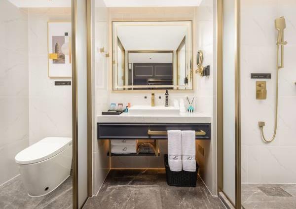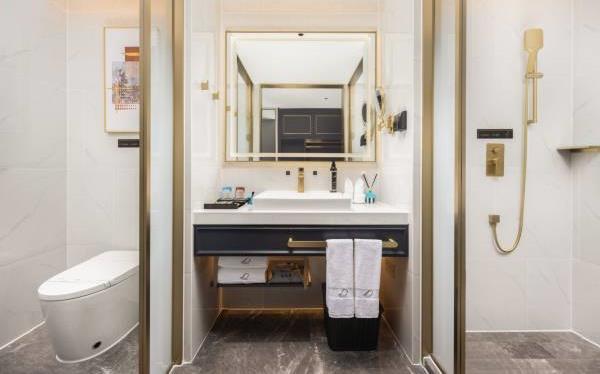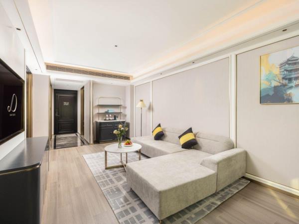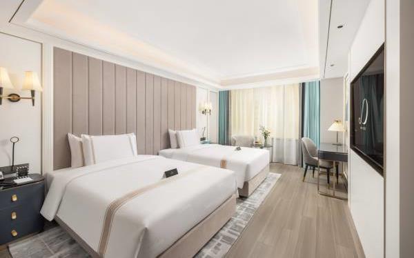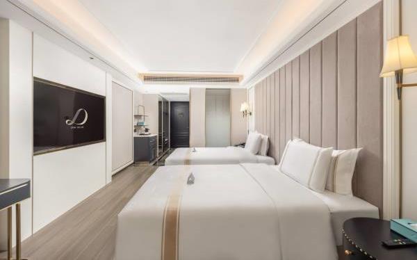 酒店坐落于潮州繁华核心,距市政府与人民广场很近,尽享地利之便,周边商娱繁茂,肯德基、麦当劳、星巴克、喜茶等品牌餐饮及电影院、海底捞等休闲场所皆在10分钟步程之内,购物、娱乐轻松可达。距潮州客运站很近,40分钟左右可至潮汕高铁站,35分钟左右即达潮汕机场,交通网络纵横交错,出行便捷。希岸Deluxe酒店承续品牌理念,为追求品质生活的城中新贵量身定制。酒店特别打造了具有潮州特色的手绘主题房间,这些房间将潮州文化元素巧妙融入设计之中,虽仅部分房间拥有这一独特设计,却也足以让您领略到潮州文化的深厚底蕴,随手一拍皆成绝美影像,于细节处彰显不凡品味。酒店遵循一店一设计理念,融合法式优雅与本地文化,营造出独有的尊崇氛围与浪漫情怀。同时引入星级定制服务,从细微处精雕细琢,秉持“有仪式感、有温度、注重细节的高定宠爱”宗旨,为宾客缔造舒适且尊崇备至的旅居体验,让您在城市喧嚣中寻得一方静雅天地,悠然享受午后惬意时光,深度沉浸于城市的动静之美,开启一场超越平凡的非凡住宿旅程。