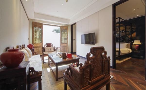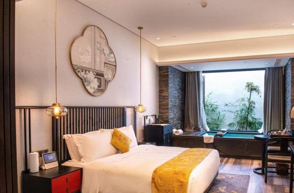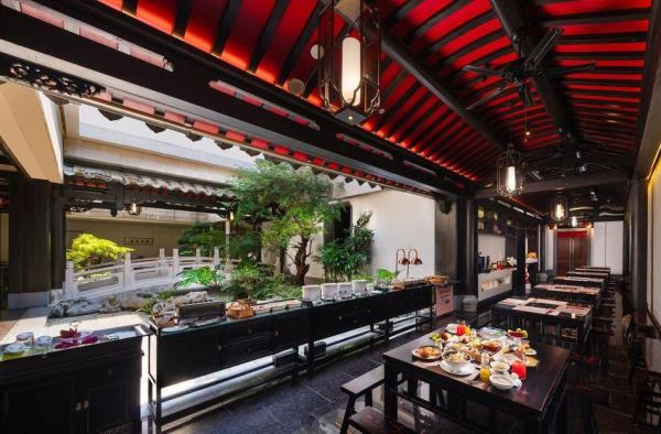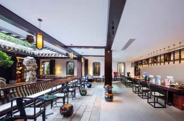 三坊七巷作为景区,自晋、唐形成起,便是士大夫的聚居地,是福州的历史之源、文化之根。而拥有多间特色客房、一间闽菜餐厅和一座青红酒坊的书香文儒酒店(九号企业旗下品牌之一),则坐落在三坊七巷中因历代文儒辈出而闻名的文儒坊内。书香文儒酒店整体建筑承袭了明清式古建筑布局严谨,院落相连的特点。酒店内亭台楼阁,绿意葱茏,水榭环绕,让人在古色古香的庭院中感受喧嚣之外的舒缓宁静。酒店大堂的书橱上陈列着各种与福州历史文化相关的精美书籍,可以让人在这里读懂从晋朝的八姓入闽到晚唐福州在中原汉人移民潮的长期推动下逐渐繁荣起来的悠久的历史,使人沉淀与他地不一样的文化沉淀。此外书香文儒酒店作为全国大漆文化艺术酒店,犹如一家大漆艺术博物馆,那千磨万彩、姿态万千大漆的美,深沉、含蓄、浑厚、优雅,体现了酒店雅致不俗的韵味。