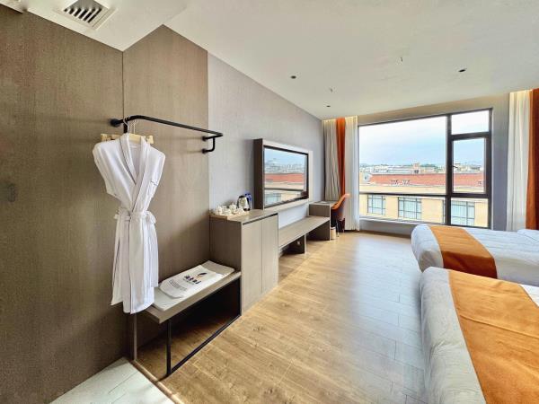 弥勒湖景酒店是一所现代 简约 时尚豪华的酒店集住宿,餐饮,休闲,娱乐,商业服务为一体的大型智能型豪华酒店。其优越的地理位置,优雅的坏境,优质的服务和人性化智能型的配套设施,将打造弥勒影响力的特色酒店酒店共有四栋楼组成(A座 B座 C座 D座)庭院式风格设计,豪华舒适,功能齐全。每栋楼各设有休闲区,是您聊天的休闲场所,其中三楼房间内设有独立阳台,布置完善细致,设施齐备高档,,风格典雅温馨。房内均设有分体式空调,24小时热水,高清网络电视,国内外拨打电话,多媒体宽带网络等令起居倍感愉悦。四周装饰着现代,简约时尚的风格,服务员彬彬有礼,带着温暖的微笑盛意相迎,以舒适的坏境,贴心的服务为宾客提供打造星级服务。
