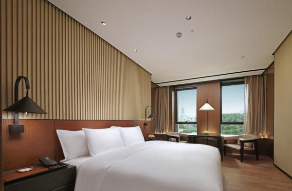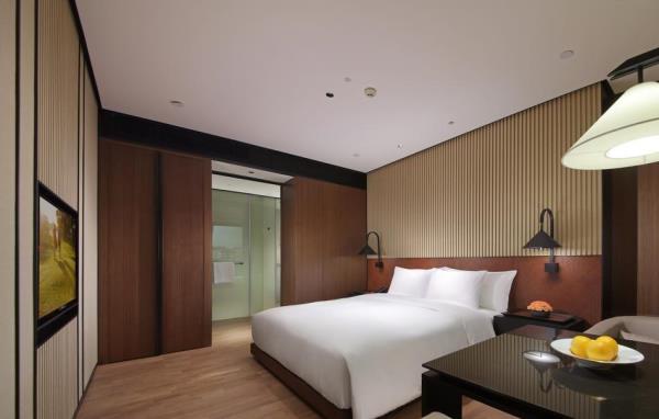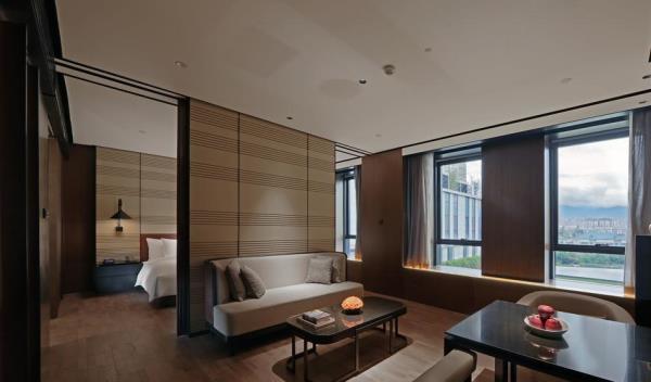 酒店身处繁华都市却闹中取静,如同一块璞玉,通过格调的装修与陈设、高品质的设施及服务,为宾客呈献“都市隐逸悠居”的度假新体验。