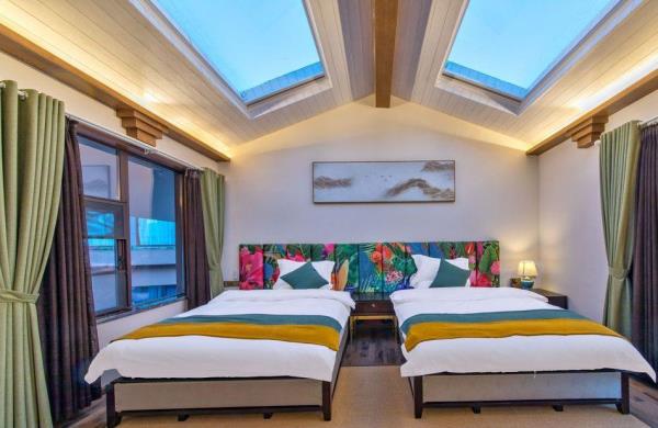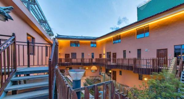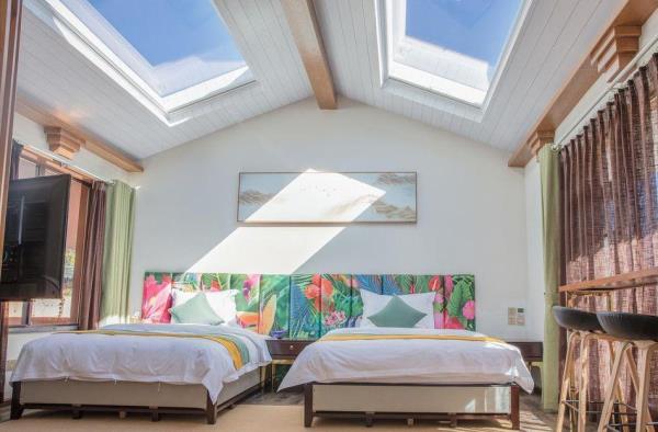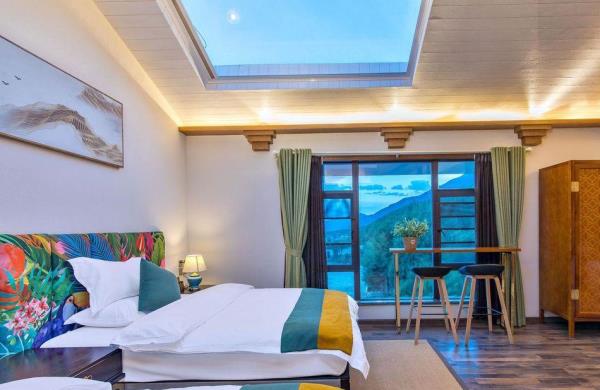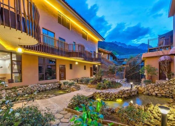 丽江云水赞雪山飞湖行馆位于丽江市玉龙县玉湖村雪蒿下村的半山腰,玉龙雪山脚下,仰头便是雪山,是整个村子的至高点。更是有很多背包客慕名来这边露营,路边随处可见旅拍达人,和拍婚纱照的情侣。客栈配置十间客房,推窗即景,观赏玉龙雪山。闭门便是自己的私密空间;房间配置全进口白橡实木家俬,私人定制乳胶床垫,90%鸭绒被芯、枕芯,巴基斯坦高级精梳纱贡缎棉织品,TOTO卫浴系统,卫生间干湿分离,英国Sevenplus洗漱用品,简约、精致、温馨,让您在丽江度过一段美好时光。玉湖村美籍奥地利植物学家、探险家、地理学家先曾在次地居住长达27年。花筑·丽江云水赞雪山飞湖行馆在保持玉湖村石头外墙原貌的基础上,结合了中西合璧的的混搭元素,雪山流水直接流入客栈。这里以武侠元素为设计基础,古典加现代相结合的装饰风格,融入金庸的武侠元素。