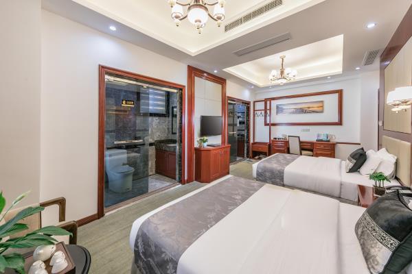 酒店位于福州国际机场附近(提供机场24小时免费接送),临近海边沙滩,繁华商业区,毗邻漳港商场,市场中心,数码商业街,旅游景点。 酒店按高规格要求设计,拥有装修别致的商务大床房,豪华中式风格,阳台观海房,大厅设有高级候客厅和餐厅,房间数量充足,提供高速光纤网络,另配有国内一流电梯,安全舒适是我们一直努力的目标。前台24小时值班,高清监控轮巡无视角,为你保架护航,是商务出行、旅游度假的理想选择。