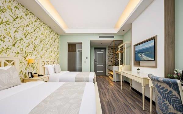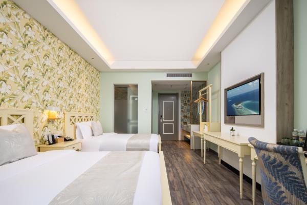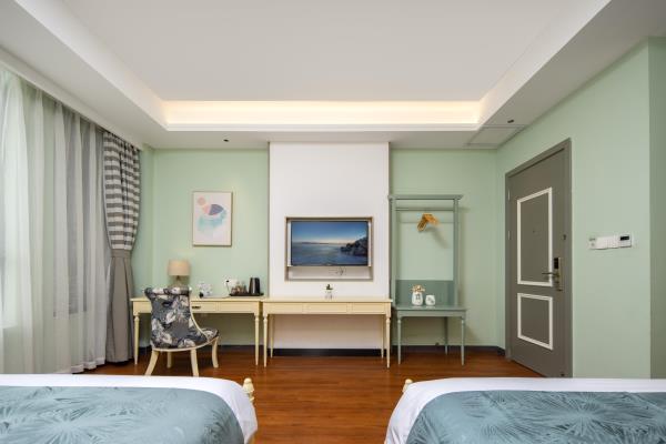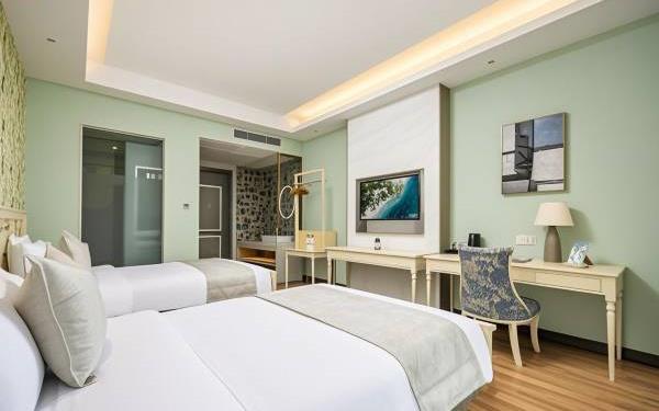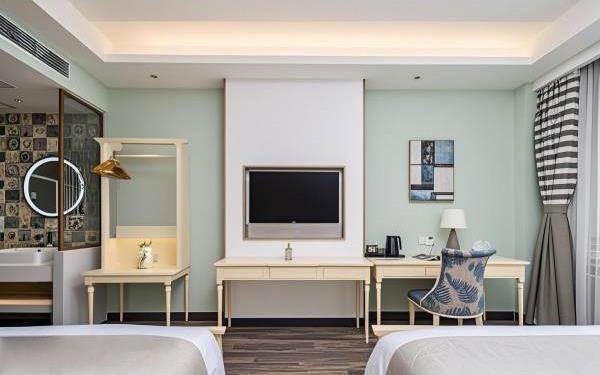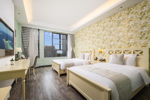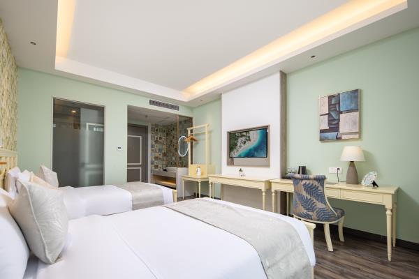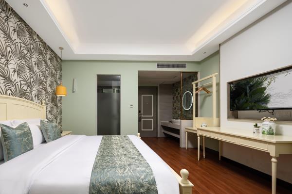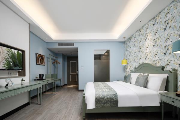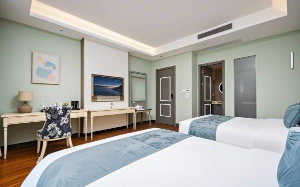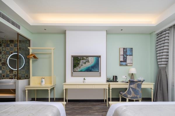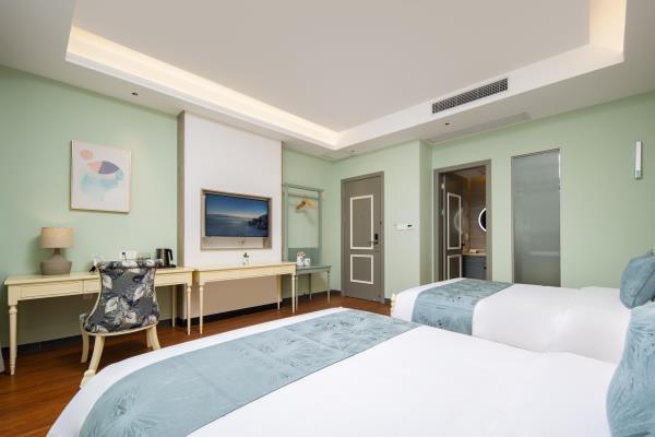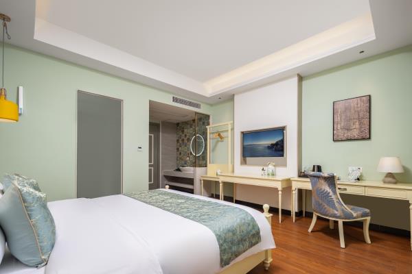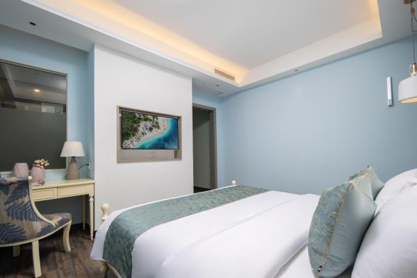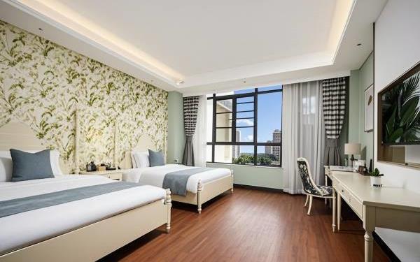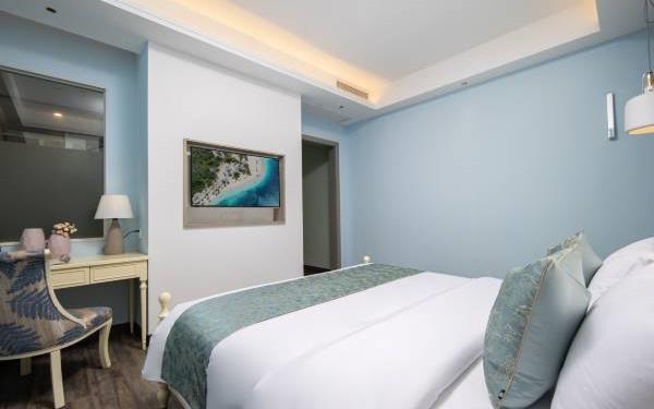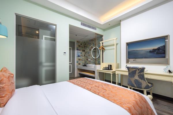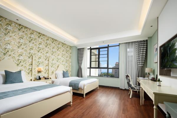 酒店位于三亚湾和三亚河之间的三亚市天涯区铁路中路10号,属于三亚市内海边繁华地段,酒店前面是三亚湾海边沙滩和椰梦长廊海月广场段,酒店后面是三亚市解放路繁华大街的明珠广场购物美食城和春园海鲜美食广场,三亚河岸边红树林公园等;酒店左面是吉祥路地方美食街、团结路旺毫购物美食广场及解放路步行美食购物街等,右面是迎宾路沃美购物广场及外贸路美食街等。酒店为您提供各种不同规格的豪华大床房、豪华亲子房、豪华双人房及豪华三人房等各具特色的中央空调和中央热水客房,任您选住。酒店餐厅为您提供早餐、中餐、晚餐自选点餐服务,任您选吃。酒店的停车场为您提供免费停车,酒店的洗衣房为您提供洗衣机免费自洗。早上可到三亚湾海边和三亚河散步观望海水涨潮落潮,钓鱼欢歌,游泳,傍晚可到三亚湾海边俯瞰日落入海的海天霞光景色等,感受美丽三亚、浪漫天涯的欢乐。酒店傍边有通往三亚海旅免税店、三亚千古情、珠海免税三亚旅投免税店、三亚火车站等地的公交车站和轨道电车站,旅游出行,交通便捷。