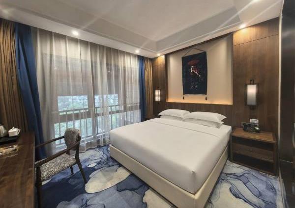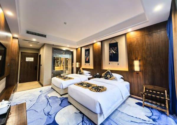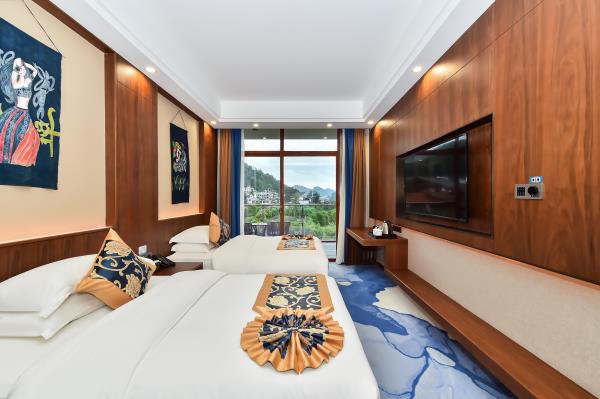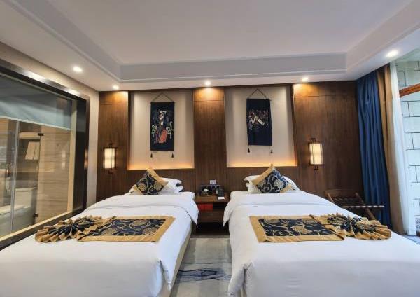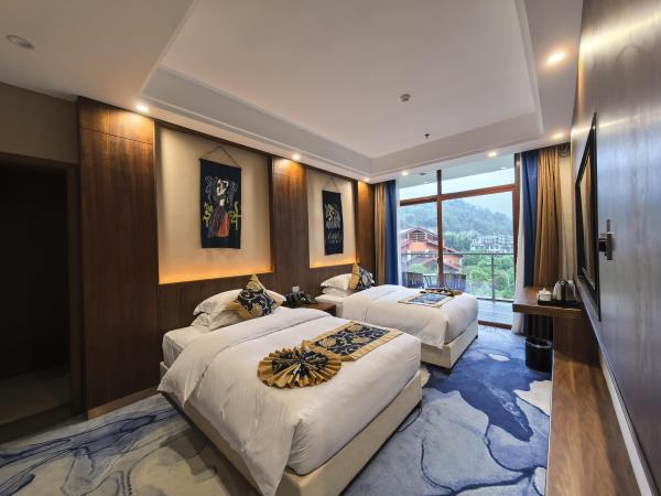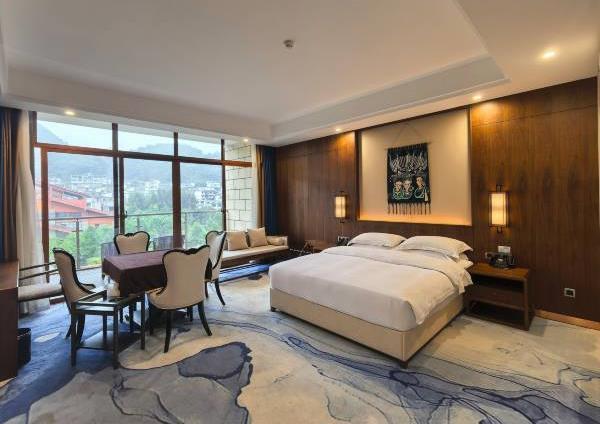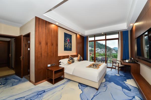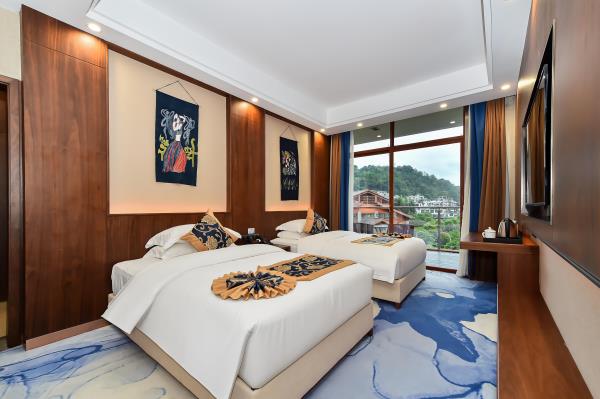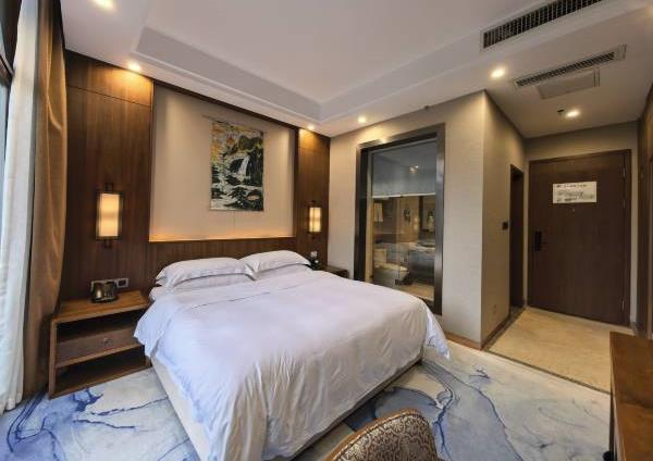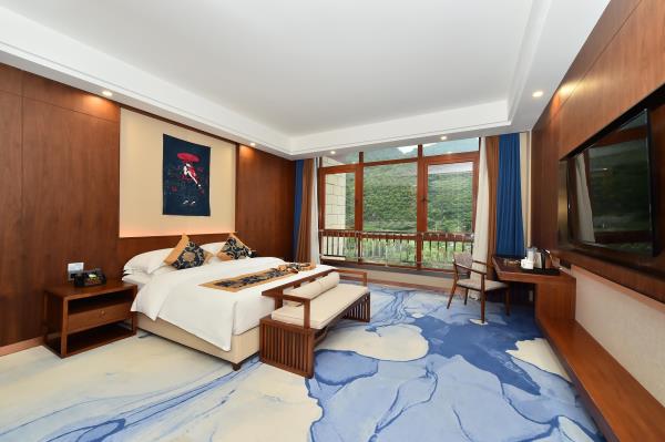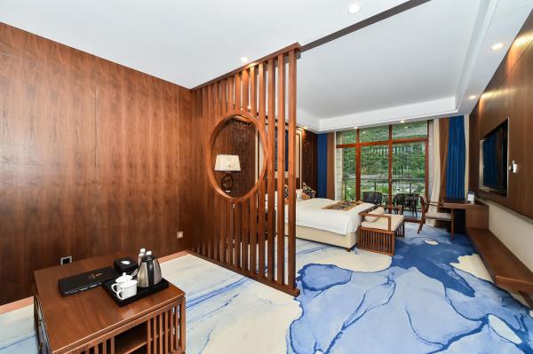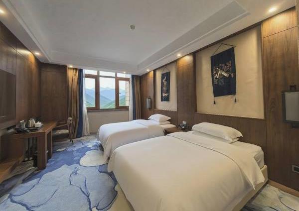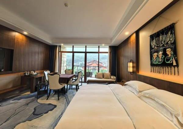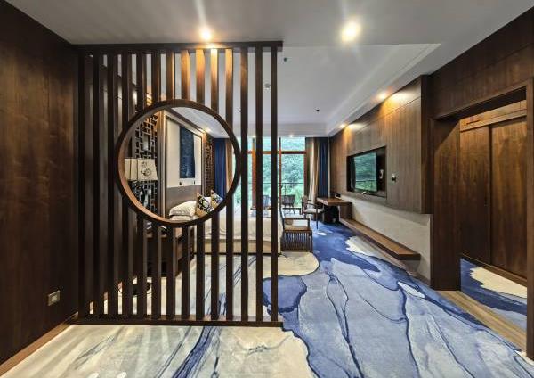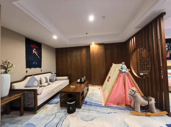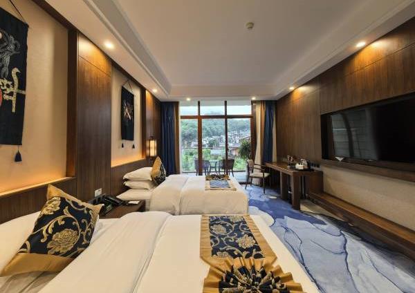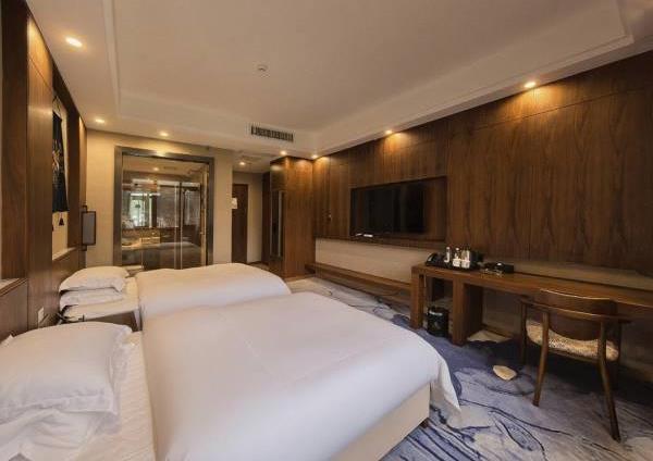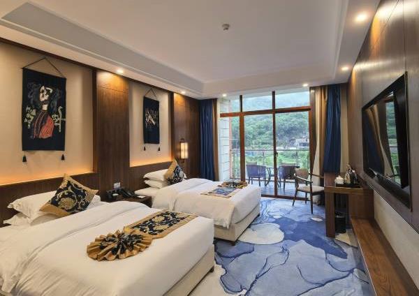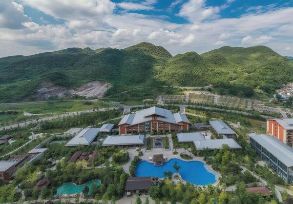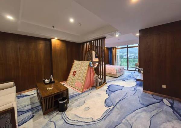 六盘水瀑布源温泉酒店位于六盘水市六枝特区落别乡102省道龙井村,地处龙井温泉度假区核心地带,是由六盘水市旅游文化投资有限责任公司和六枝特区旅游文化投资有限公司投资新建的大型温泉旅游度假区。 酒店环境 酒店四周群山环抱,绿树成荫,果树围绕,空气清新宜人,景区内奇山丽水,风景秀美,全年平均气温19度,无论是避暑康养还是冬日休闲,都是很好的选择。 酒店旁的龙井泉水丰富,清澈冰凉且无污染,作为瀑布的源头,赋予了酒店独特的自然景观和灵秀之气。 交通位置 酒店交通便利,距黄果树安顺机场约30分钟车程,方便游客前来入住,无论是乘飞机抵达还是游玩黄果树瀑布后前来,都十分便捷。 酒店设施 温泉度假区:拥有来自地下2800米的深层温泉水,出水温度55℃,富含K、Ca、Mg等对人体有益的矿物质,设有各式温泉池,还融汇了世界温泉沐浴文化及当地少数民族文化元素。 水上乐园:占地面积10万平方米,日接待量可达3000-5000人,配备了人造冲浪池、水滑梯、儿童趣味戏水城、喷泉池、漂流河、巨型水寨、大喇叭、室内水上乐园等十几种国内先进的水上娱乐设施。 多彩露营基地:占地6万多平方米,植被种类繁多,犹如天然氧吧,设有帐篷入营区、自驾游营区、木屋营区等,还有景观桥、垂钓园、BBQ、采摘园、集散广场、流水景观、休闲木栈道、服务站等配套服务设施。 会议设施:多媒体会议室、宴会厅等会议设施齐全,包含婚宴,多功能多元化的宴会厅,可满足50-500人的不同会议及组织的要求。 餐饮设施:中餐包房提供精选黔、湘、川等名菜,适合阖家团聚、商务宴请或知己小憩;咖啡吧可容纳80余人,是商务洽谈的理想之地;酒店的餐饮还包括中式和西式餐饮,可容纳2000余人同时享用中西美馔,大堂吧提供品种丰富的中式茶、咖啡、西式小点心及各种饮品。 客房服务 酒店拥有多种类型的客房,房间干净整洁,布置温馨舒适,部分房间还临近溪边,可欣赏到美丽的自然景色。酒店服务人员热情周到,能够为客人提供优质的服务,让客人感受到家的温暖。
