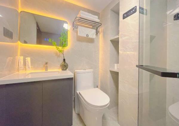 卫浴设施:淋浴、私人卫生间、毛巾、拖鞋、24小时热水、私人浴室、浴巾、雨淋花洒喷头。仅部分房间具备:、吹风机