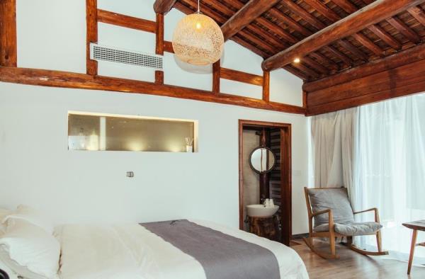 漫步古道秋里望柿红,静观星海闲中饮茶欢。在忆宿·隐柿东坪里,诗意生活从来无关岁月变迁。忆宿,正是一群年轻的海归设计师与文化创意爱好者被东坪的柿子文化和千年古道、古树群所吸引后寄托乡愁的地方。一舍一亩田,一宿山水间,这是忆宿的品牌理念,也是当今快节奏生活的奢侈。房间的陈设将现代简约设计与中国禅意、诗意、茶道等元素完美融合,处处体现着低调的奢华,雅致的品味。忆宿从东坪柿子产品出发,除了民宿打造外,还策划举办了包括东坪柿子文化节、宴东坪、露营文化节等活动,开发了柿子酒、柿子茶、柿子干、柿染、柿子茶具等当地特色衍生产品。另外,民宿更是带动了村民致富,提升了他们服务品质。看乡景,听乡音,闻乡风,品乡味,感乡愁。让我们来寻访这一座乡间民宿——忆宿·隐柿东坪,邂逅对初心的坚持,体验乡村文化的传统与创新、本真与时尚……风火山林,孙子兵法里面的兵法,其疾如风,其徐如林,侵掠如火,不动如山,展示柿子的热情火烈,是为动;静雅恬淡,为民宿的内敛舒适,取为静;一静一动,最后用隐柿平衡。