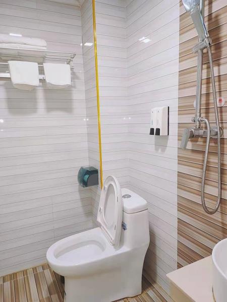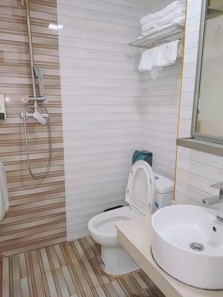 卫浴设施:淋浴、私人卫生间、毛巾、拖鞋、24小时热水、私人浴室、浴巾、雨淋花洒喷头。仅部分房间具备:、吹风机