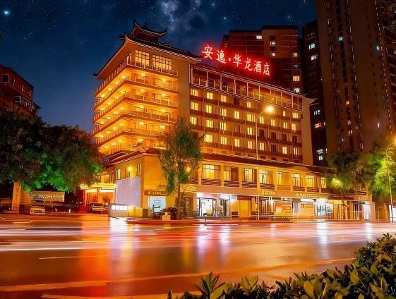 成都华龙酒店位于成都一环西门核心区,地铁5号线花牌坊站C口旁,交通便捷。酒店周边景点环布,生活便利: 抚琴夜市(步行5分钟), 成都中医药大学附属医院、四川省医院(车程5分钟), 永陵博物馆(车程8分钟), 宽窄巷子、杜甫草堂(车程10分钟), 武侯祠、春熙路(车程15分钟), 熊猫基地(车程30分钟)。