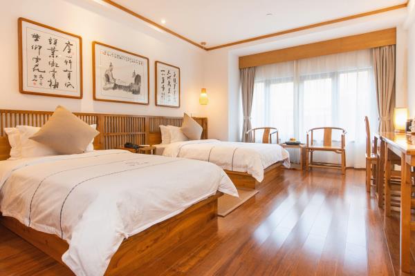 上海净心归卧酒店位于上坤上街商业广场,近宝山净寺,步行可达,距美兰湖景区约12分钟车程,美兰湖地铁站约3公里左右距离。上海净心归卧酒店属于中式古典装修风格,房间内设有金丝楠木家俬、电视、独立空调、等电器设备。酒店公区设有电梯、音响、书架、茶室,中庭设有大型“枯木山水” 日式园林景观。沿着酒店外围,亭台楼榭隐于廊桥流水之中,苍松翠竹绕过白色墙体,整体的园林质 感传递曲径通幽的诗意画面,达到不出城市而获山林之怡的境界。心若净,纤尘不染 ,心若净,则大释然,净心归卧酒店用一场古典禅意体验之旅,为您创造了闹市中的一方净土,带您走进这闹市中的世外桃园。