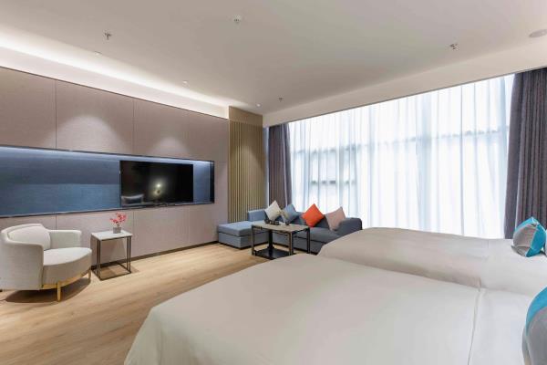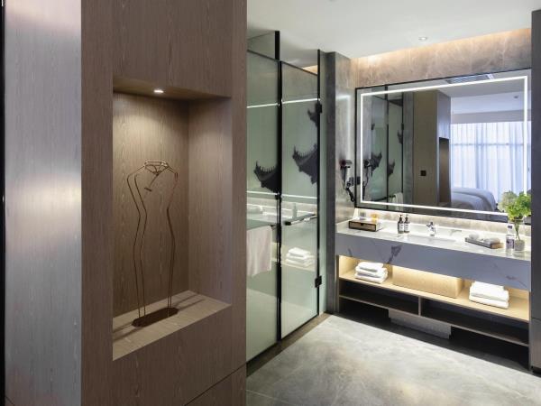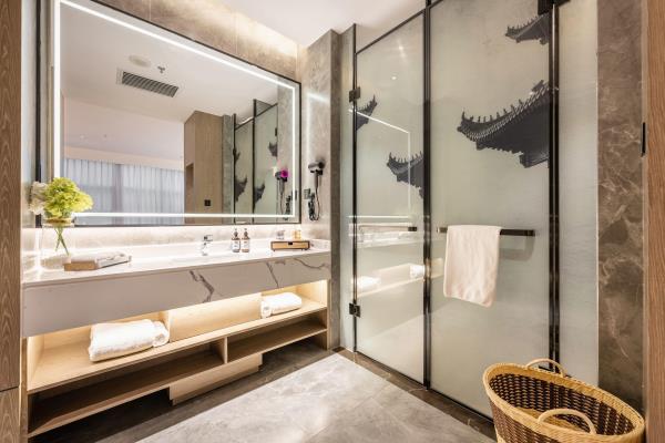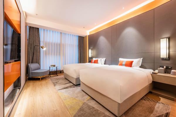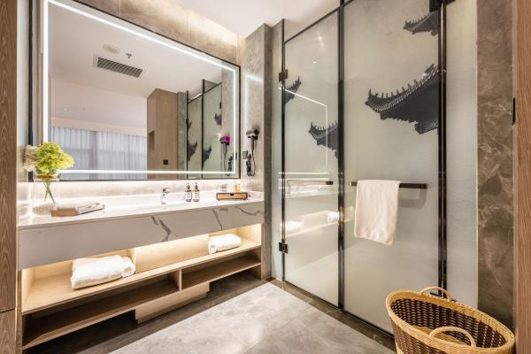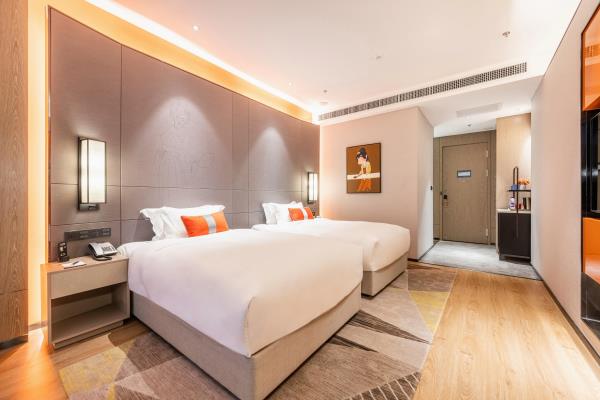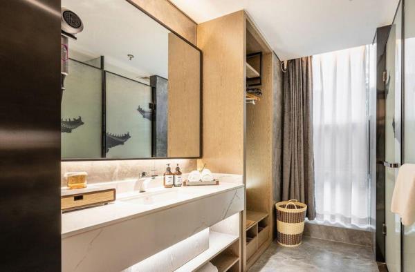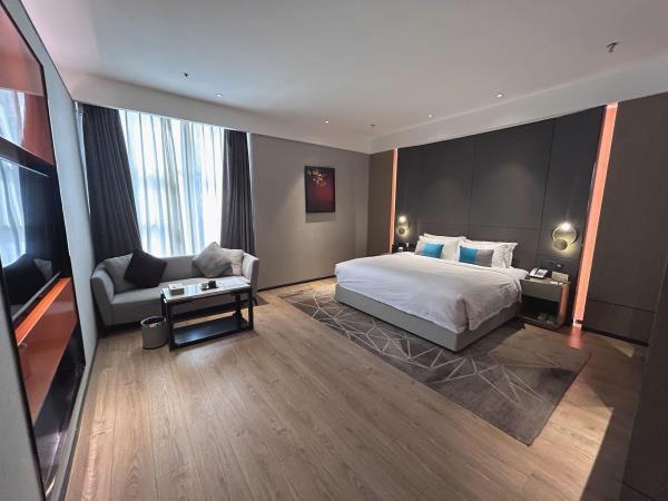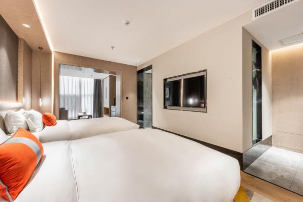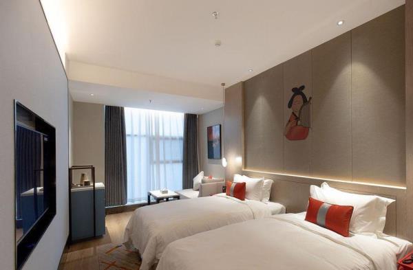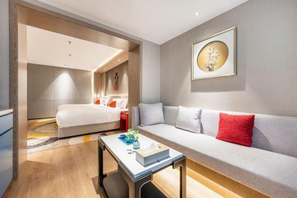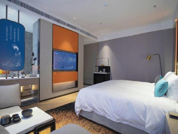 酒店位于古都西安市中心钟楼商圈,毗邻地铁2号线“钟楼站”,可轻松前往高铁北客站、机场及市内各处。 步行即可到达钟鼓楼、回民街、明代古城墙--永宁门、碑林博物馆等景点。可快速到达陕菜美食街区--永兴坊、大雁塔、陕西历史博物馆、大唐芙蓉园等著名景点,让您深处繁华闹市时刻感受千年古都气息。酒店整体为现代中式风格,在细节处融入盛唐文化元素,诗词歌赋的展示充满人文气息,客房设计清雅简约,以唐代特色的仕女画为点缀,清浅的颜色勾勒出整体空间的雅静氛围让人仿佛穿越回大唐盛世,于细节处体现古城西安的文化特色。酒店采用中央空调新风系统,客房配备超奢华酒店高体感床品,全羽绒被、枕芯;一体式全记忆棉床垫;65寸液晶电视;高端卫浴洁具,洗浴恒温装置、干湿分离;高端品牌洗护用品。采用先进的客房智能控制系统,可以智能操控空调、灯光、窗帘、投影仪等设备;还可与智能机器人“小悦悦”休闲互动,闲聊和听音乐等,全方位满足宾客入住的舒适性及个性化需求,为宾客带来新奇的入住感受!酒店致力于为宾客提供轻奢、高端、智能化的住宿体验,全程为您提供贴心周到的尊贵体验,让您在酒店有一个“回家”的舒心体验。