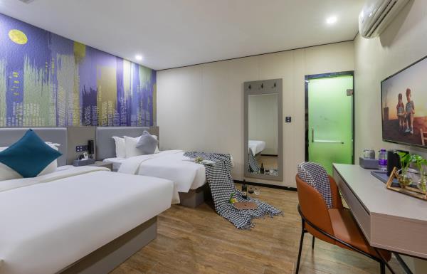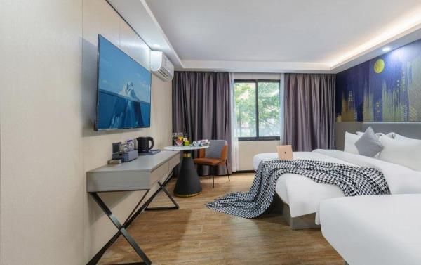 酒店位于广州中轴线(广州大道南敦和路) 地理位置优越,近客村地铁站(3号线/8号线C出口左行约850米客村立交再左行750米), 毗邻旅游打卡地海心沙公园、花城广场和广州塔(小蛮腰);临近琶洲国际会展中心、中大布匹市场、华南鞋城、海珠区府、海珠区人民法院和海珠科技园;紧靠广州珠江新城、中山大学、广东省第二师范学院、省第二人民医院、珠江电影制片厂、TIT创意园;周边配套齐全,有大型购物商场好又多、合生广场、丽影广场、海珠万达广场、KFC、麦当劳等商家。 酒店大堂设有百宝箱百项增值物品例如:卸妆水、卸妆棉、防晒霜、洗面奶、一次性洗脸巾、一次性内裤、一次性袜子、红糖水、卫生纸..等等日常用品,一应俱全! 暖心增值服务:前台冰箱设有:网红小熊奶茶,冷饮,冰粉,冰淇淋,网红小零食,酒店一楼设有网红墙可拍照打卡哟! 酒店致力于通过独特的设计格调和场景,为认真生活的消费者提供展示自我、绽放自我,不将就的生活空间,是一家可住、可玩、可拍、可宅的沉浸式中端入门式连锁酒店。无论商务出行、休闲娱乐还是度假探亲、旅游购物,酒店都是您不错的选择,我们诚挚期待您的光临!