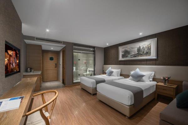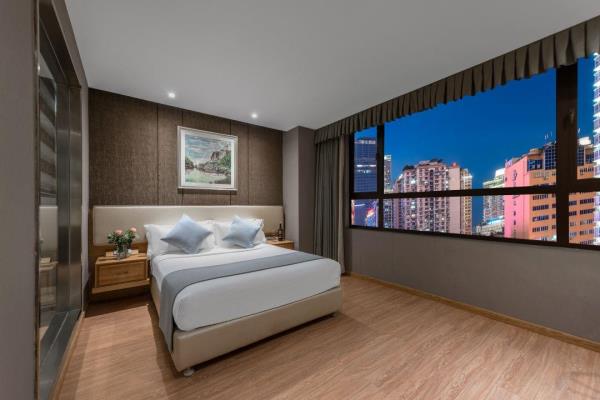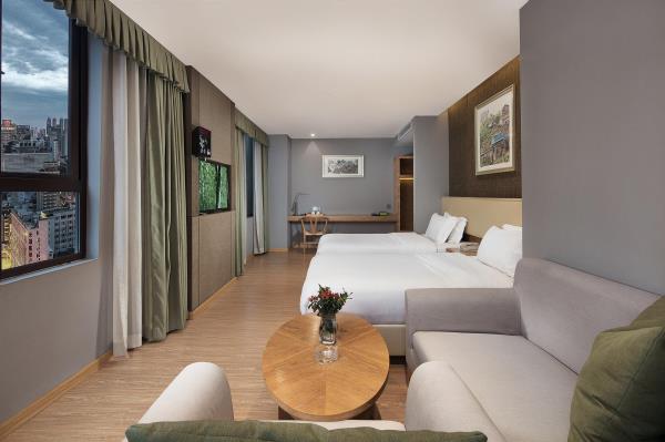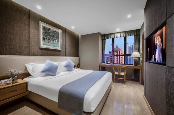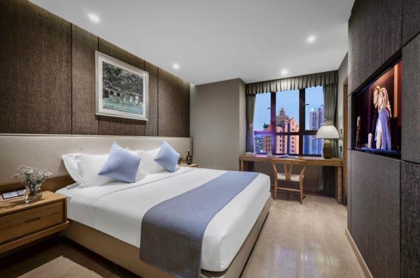 坐落于解放碑的本店,会让您在重庆拥有别样的体验,开展一段难忘的旅行。从酒店到重庆江北国际机场、重庆北站,均很便捷。除此之外,至小什字地铁站只需步行前往。包括长江索道和洪崖洞商业街都在酒店周边,对于入住旅客想在该地区畅游会很方便。酒店为您在客房内配备了空调、液晶电视机和衣柜/衣橱,所有入住的客人均可便捷的使用。有饮水需求的旅客,酒店还为您提供了电热水壶和免费瓶装水。浴室内提供拖鞋、24小时热水和吹风机,让您感受到宾至如归的享受。如果旅客想在自己的房间舒适的用餐,酒店可提供客房服务。若是觉得酒店的餐饮无法满足您挑剔的味蕾,附近杨记隆府(川菜)的杨府招牌鱼、纸盐河码头火锅(洪崖洞店)(火锅)的鲜毛肚和尘香(川菜)的秘酱三文鱼或许能勾起您的食欲。优美的环境,再搭配上细致周到的服务,酒店的休闲区定能满足您的品质需求。酒店的会议厅将热情的服务与专业的素质完美地结合在一起。24小时开放的前台服务可为您随时提供信息,以帮助您探索这个魅力之都。