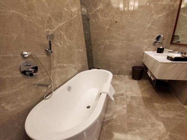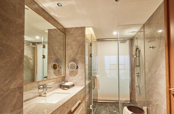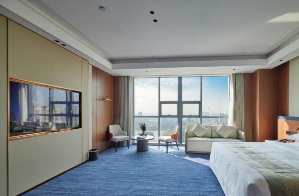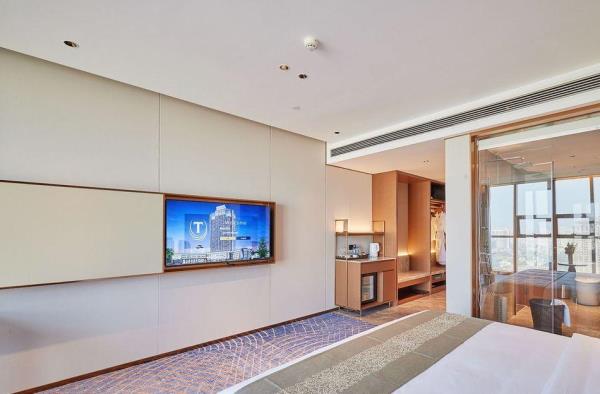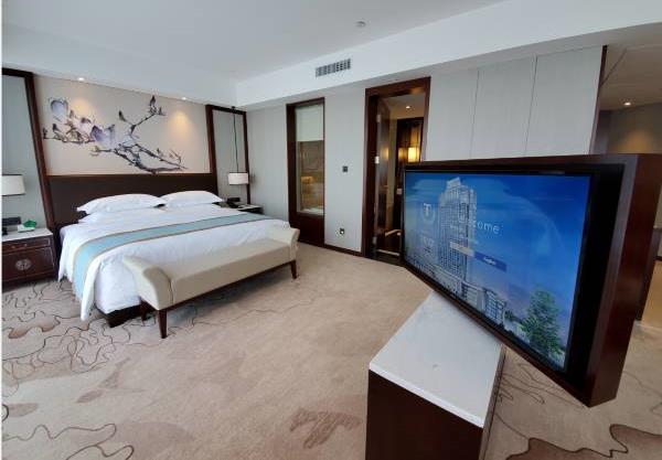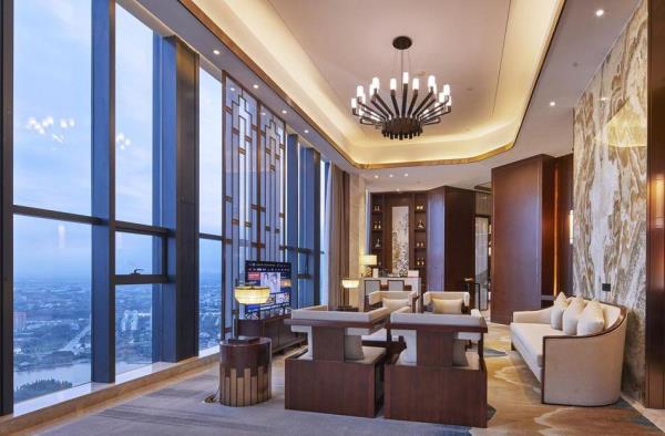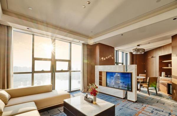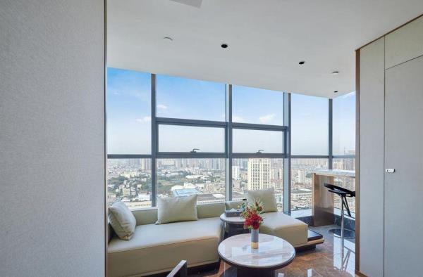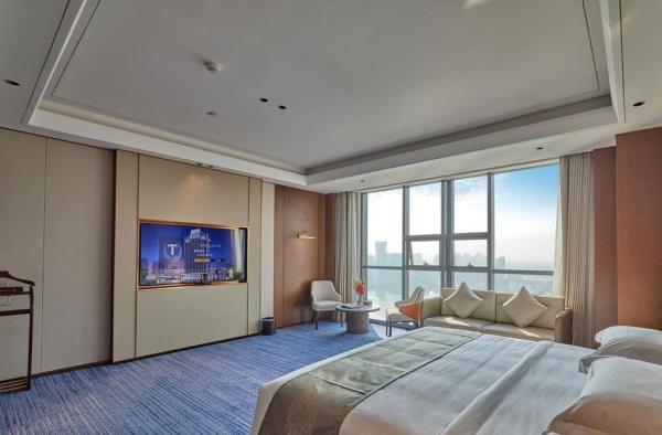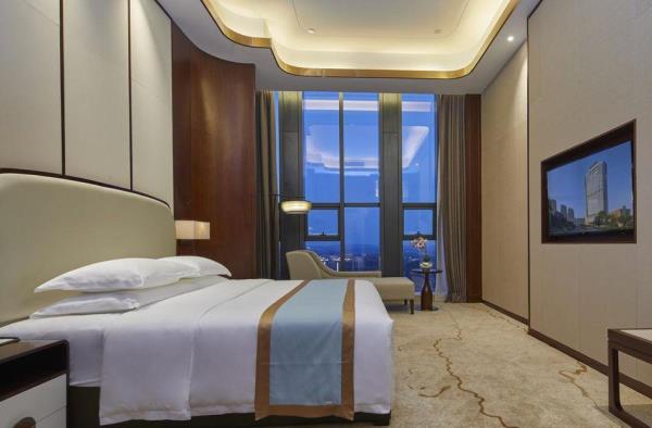 天骄国际酒店座落于钦州滨海新城白石湖CBD(中央商务区)核心区域,周边交通便利、商务配套完善,紧邻钦州市民服务中心、白石湖公园,毗邻钦州新城吾悦广场,距离钦南区人民政府、钦州市汽车南站3分钟车程,距离钦州火车东站(高铁站)15分钟车程, 酒店位于广西钦州市金海湾东大街8号,地处钦州城市精英聚集区,是由广东光大集团斥资超4亿元精心打造的,集商务、客房、餐饮、会议、休闲、娱乐等于一体的具有国际水准的豪华商务型酒店,酒店以时尚、健康为主题,为来自世界各地的人们提供尊贵的白金级管家式酒店服务。 酒店总建筑面积近130000平方米,主楼共38层总高度168米,聘请国际知名设计院设计,装修风格雅致却不失高贵。酒店拥有宽敞舒适的会议空间,设有能同时容纳1200人开会的1100平方米无柱多功能宴会厅,西餐厅,豪华包厢、茶餐厅、康体中心、KTV、室外温泉水疗和室外游泳池等设施,有湖景客房、行政客房、商务套房和总统套房等诸多间/套,住客在饱览高层湖景的同时,更能享受办公、休闲、购物为一体的便捷城市生活。