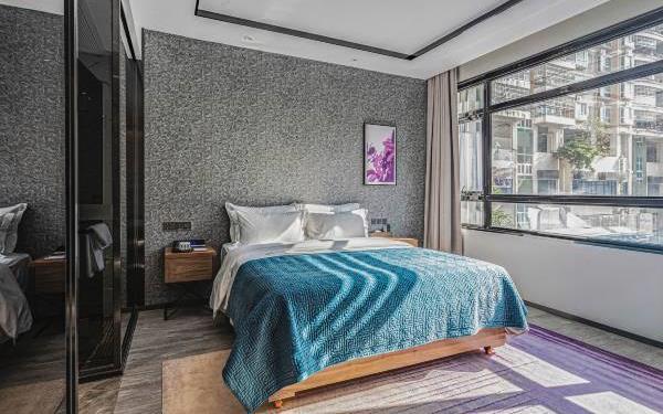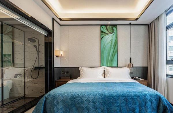酒店位于宝安区中心地带,地处宝安区翻身路167-2号。位于深圳地铁5号环中线翻身地铁站及1号线宝体站附近。距最近的购物中心壹方城约10分钟车程,离海岸城、蛇口口岸及前海自贸区约20分钟车程。周边配套有休闲会所、电影院、KTV、创业天虹、新一佳、华润万家、海雅百货、宝安体育馆等。大家常常奔走于繁忙、喧闹的生活之中,往往忘记停下脚步去探寻内心。 酒店——游憩商务,城市商务新概念。酒店准确把握“动与静”、“开放与私密”的运营模式。致力于为您打造一个亲切、舒适的城市艺术生活空间。静时,你可以拥有一个安静的休憩屋;动时,你可以拥有一间闲适的商务房。我们将“序、静、明、雅”作为产品的设计理念,为您提供对城市慢生活的规划,以及对寻求本心的方向。 酒店拥有豪华客房200余间/套,设有西餐厅、多功能会议室、健身房、行政走廊及自助洗衣房等星级配套设施服务。