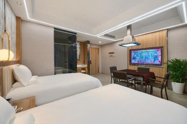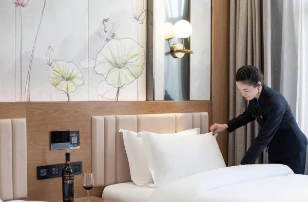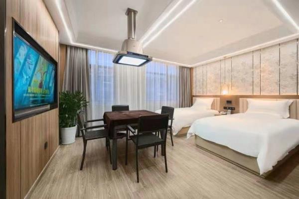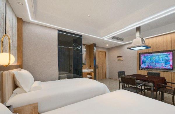 酒店坐落于义乌市北苑街道洪深路,地理位置优越,闹中取静,环境舒适,交通便利,是您商务出行的优选。酒店距离轻轨凌云站很近,可直达横店影视城,方便快捷。这是一家按照星级标准装修的商务型酒店,客房均采用全智能语音系统,(您的一声令下,就可以满足您进客房的全部需求)。酒店客房床上用品均选用高级乳胶床垫,乳胶枕头,优质鸭绒被,另外酒店配备大厅免费茶水,免费自助早餐。酒店门口大型停车场,提供代客泊车,接送机服务(详情请咨询商家),酒店客房360度紫外线消毒、除菌除螨,确保您在入住期间安全、放心。酒店秉着“顾客至上,健康品质“的理念,让您在商务旅行中如家一样的舒心、安心。酒店附近有大型商场,医院,旅游景点,详情请咨询前台!