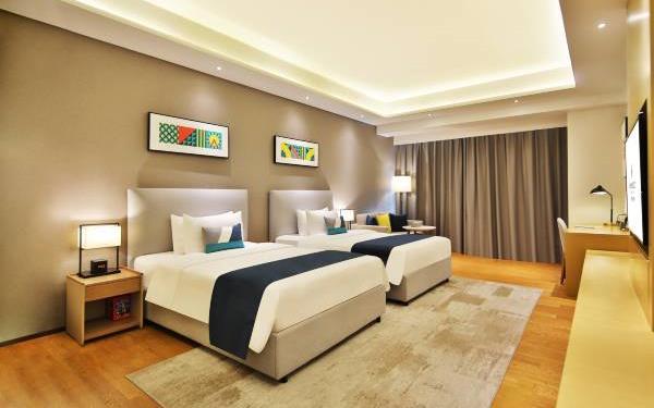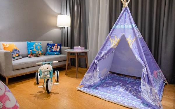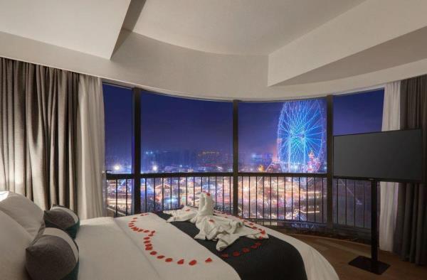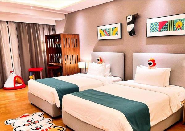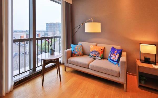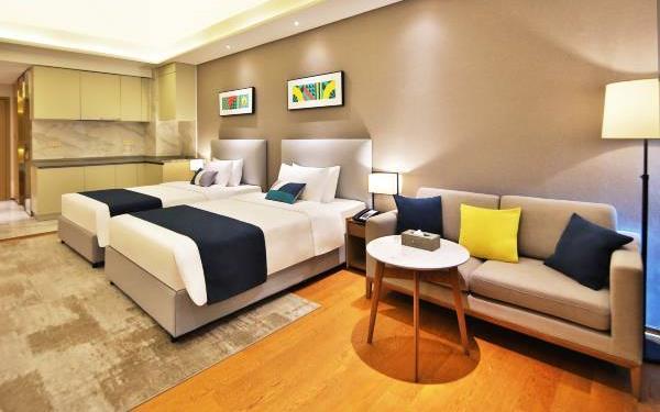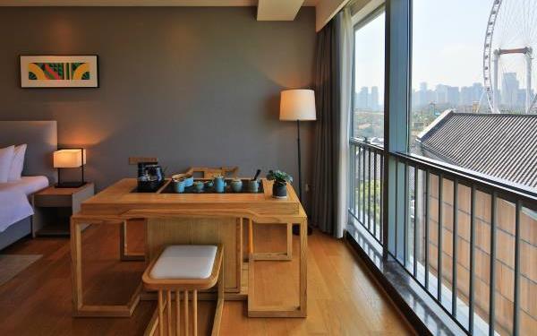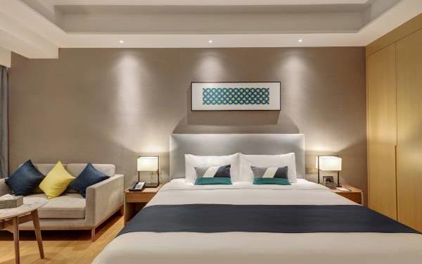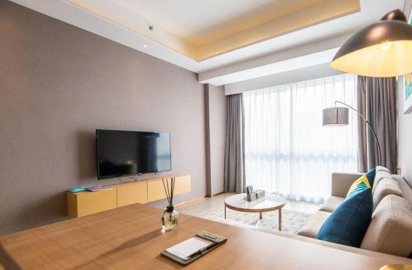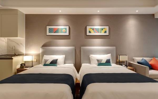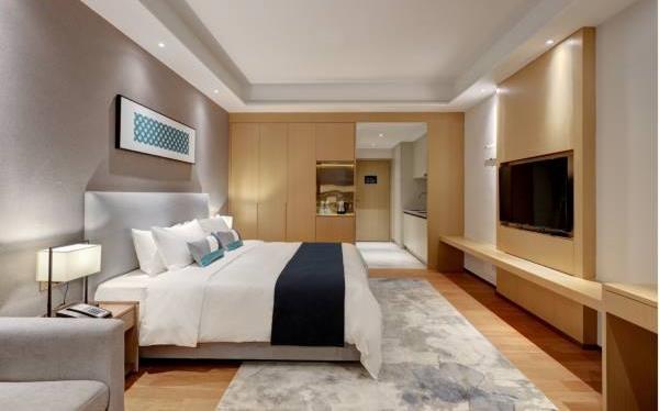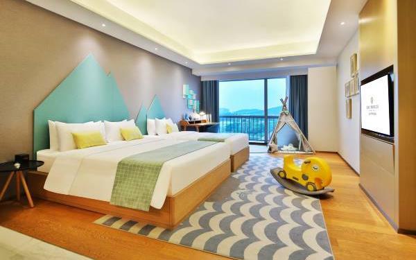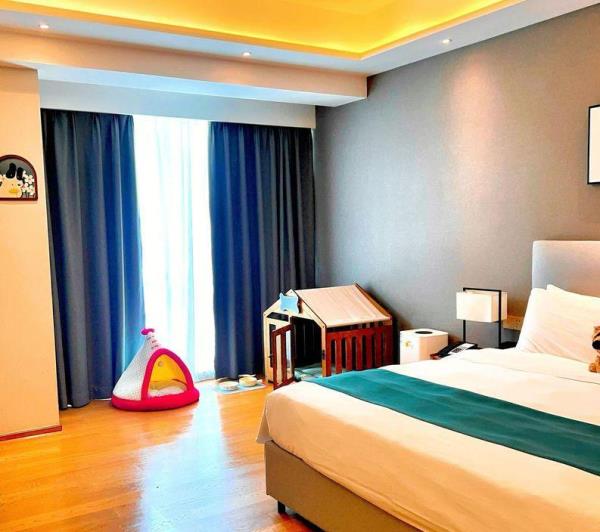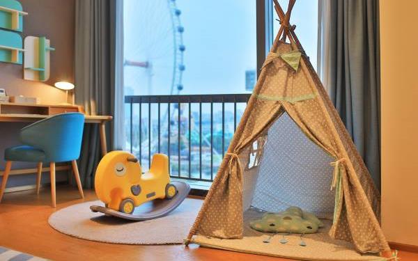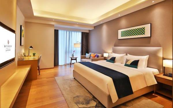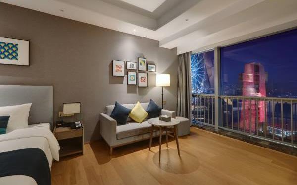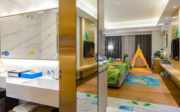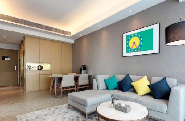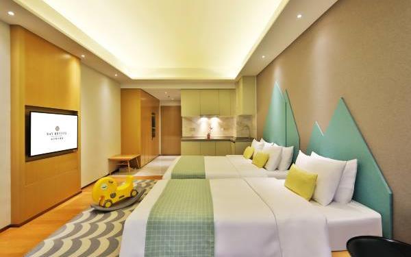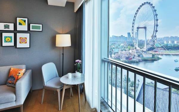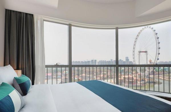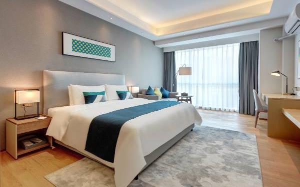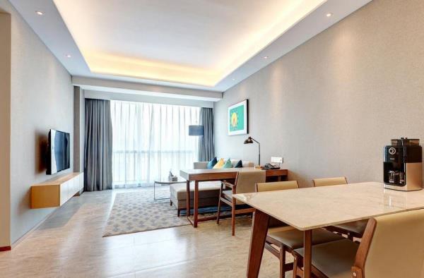 酒店地处佛山市顺德大良新城区CBD,隶属顺德华侨城欢乐海岸PLUS项目群,自带华南海岛主题“水公园”及开放式主题“陆公园”游乐配套,坐拥16万㎡顺德版“清明上河图”风情商业街区和一站式购物中心,毗邻顺峰山公园及区政府,5分钟车程即到顺德轻轨站,距新白云机场城市候机楼、顺德港码头仅需8分钟,轻松可达粤港澳湾区各主要城市。酒店共设有精品酒店客房一百余套,融合现代高品质流行风格及阔绰空间设计,竭诚为每位宾客带来便捷、舒适、有格调的酒店及居家住宿体验。48-108㎡的舒适休闲度假客房空间,精美中西式早餐,欢乐海岸PLUS景观自助式洗衣房、书吧,亲子特色家庭套房,配备厨房的一房及两房公寓,尽享长租居家体验,功能齐全的商务中心,156人同声传译会议室。从蓝汐客房望去,桂畔湖和生态岛美丽风景尽收眼底。华灯初上,99米“顺德眼”摩天轮、灯塔餐厅、玫瑰广场及岭南建筑院落群组成的夜景美不胜收,让您亲历传统与现代视觉的完美碰撞。酒店大堂出门即可步入风情商业街区,这里汇聚了顺德美食博物馆、猪肉婆私房菜、海底捞、仁信老铺、聚福山庄等餐饮名店,让您即刻开启“寻味顺德”之旅。一站式购物中心为您提供时尚零售、IMAX电影院、亲子乐园、创意手作、运动健身等高品质都市生活体验。在蓝汐,生活是一个悠长假期!