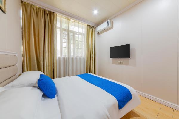客房设施:遮光窗帘、手动窗帘、床具:毯子或被子、空调