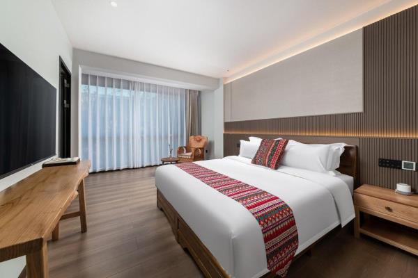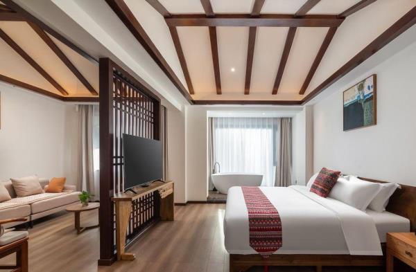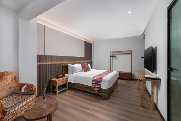 在云南省楚雄彝族自治州楚雄市,勤劳的彝乡人民打造了一个温柔多情的彝人古镇,这是在宋代修筑的德江城原址上“乔迁了一段江南,浓缩了一个彝乡”。梵音溪舍,就出落在彝人古镇,这是一家让你感觉温度舒适的民宿,她带着出水芙般的灵气、宛如散发清香的莲花、不悲不喜,以清新脱俗的侘寂风格、全新高档的装修设施、温暖周到的贴心服务,在整个古镇默默静立,一枝独秀。你来,她将以慢时光的清悠,随同古镇里的青石板路、彝人浓郁风情的载歌载舞、古镇旁奔腾的龙川江水,悄无声息间为你缷下疲惫、拂去铅华、让心归于宁静……梵音溪舍设施功能齐全,公共区域配有书吧、茶室、音乐厅、咖啡吧、餐厅、健身房、洗衣房、会客厅、会议室、别致庭院等等。