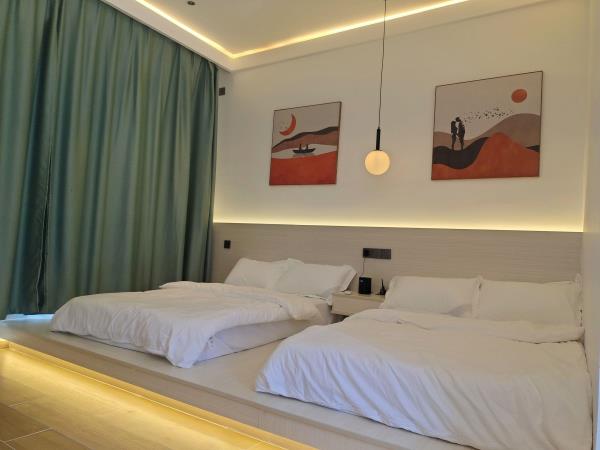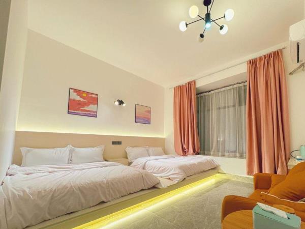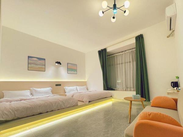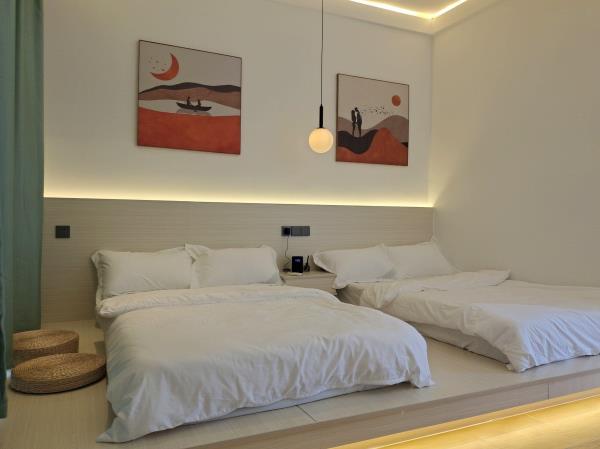 民宿在海边,一线海景,看日落、晚霞,赶海方便。海景露台休闲区,民宿院子里面种有果树,大庭院休闲区,停车方便,自助厨房、烧烤等。聚会、团建