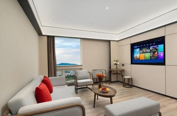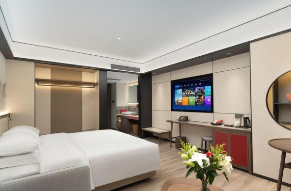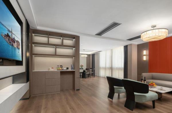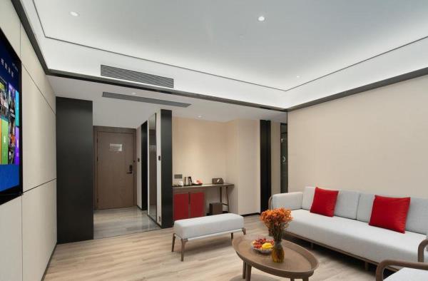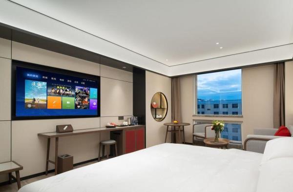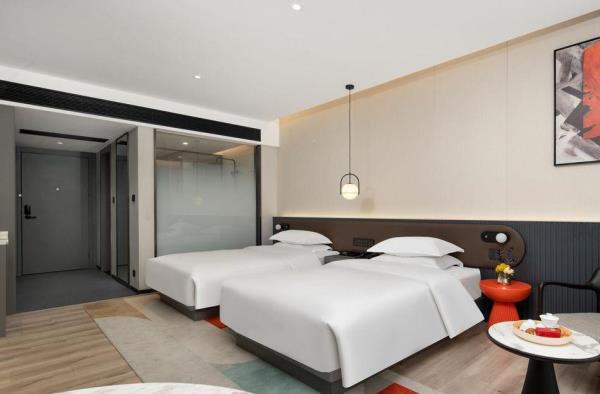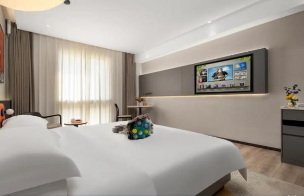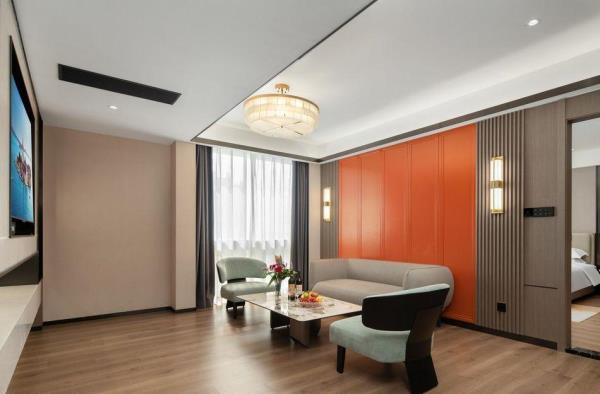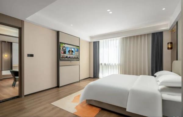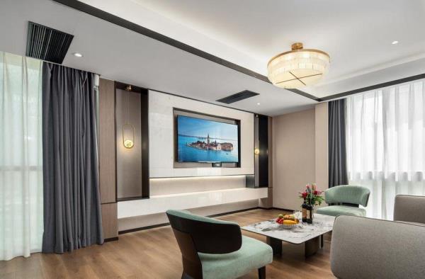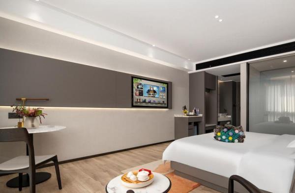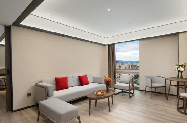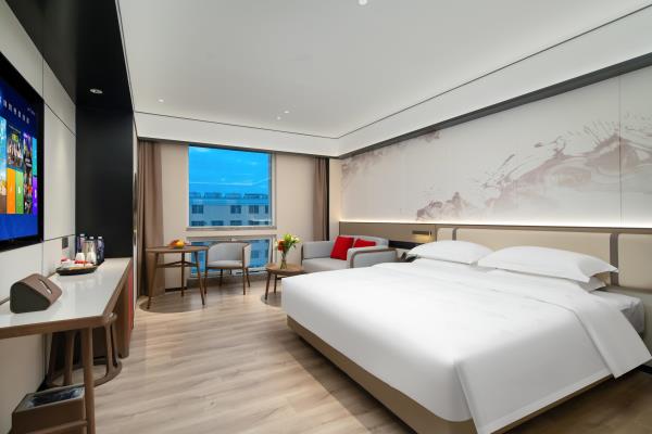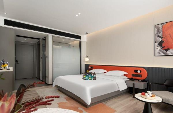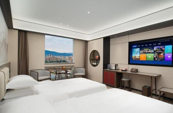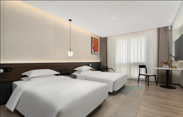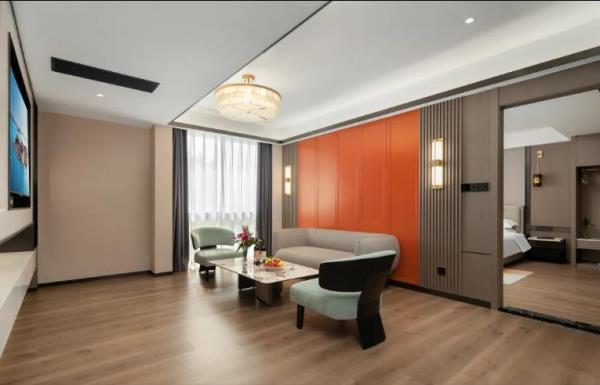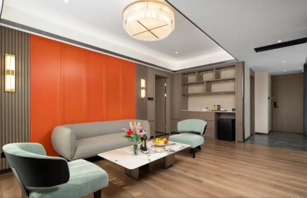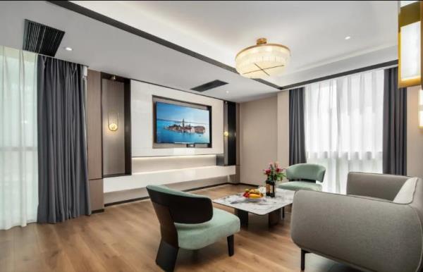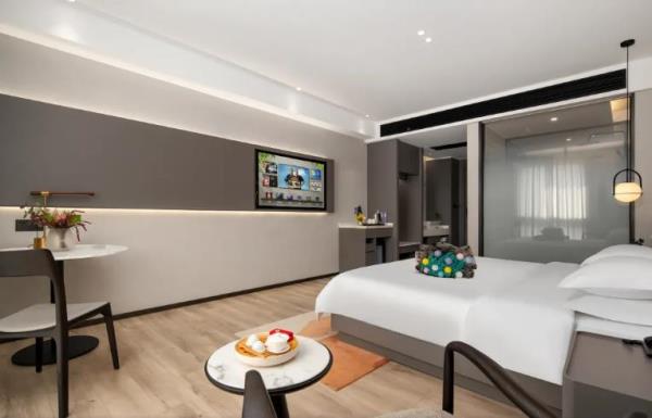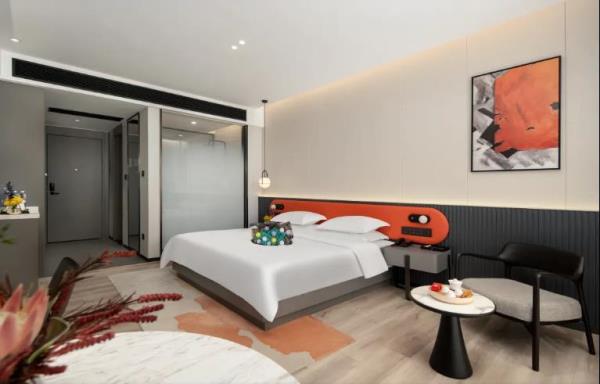 酒店位于中国内衣名地汕头市谷饶镇,毗邻潮阳高铁站,地理环境优越。酒店由上海知名设计师团队设计升级,精心打造现代轻奢型商务客房、设计典雅、精致细腻、智能客控,舒适的工作空间,以及高速网络、健身房、自助洗衣房、棋牌娱乐场所、免费停车场更有新能源充电桩等,具有浓厚潮汕特色的自助早餐厅,菜品丰盛的美味早餐,更有潮汕特色粿条以及潮汕可以打球的Q弹牛肉丸;让每一位入住酒店的宾客尽情享受一场奢华、高效、轻松的生活体验,是您来汕商务旅居的优选之地。