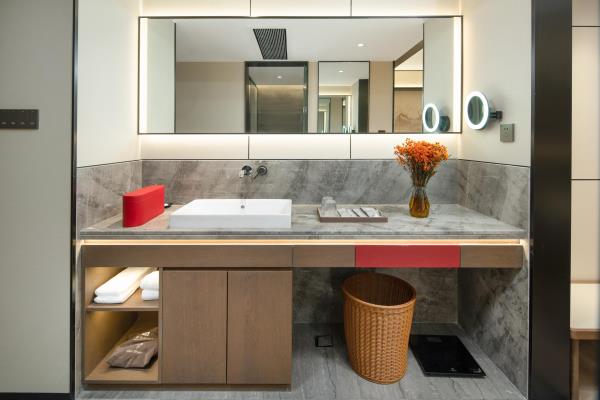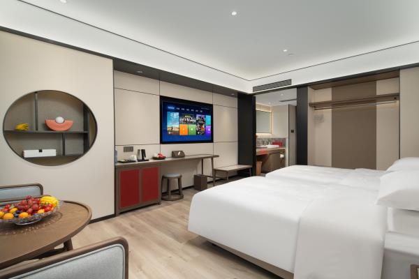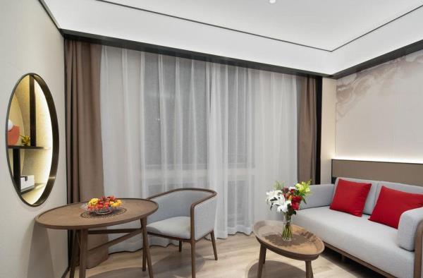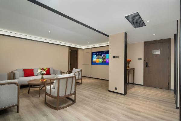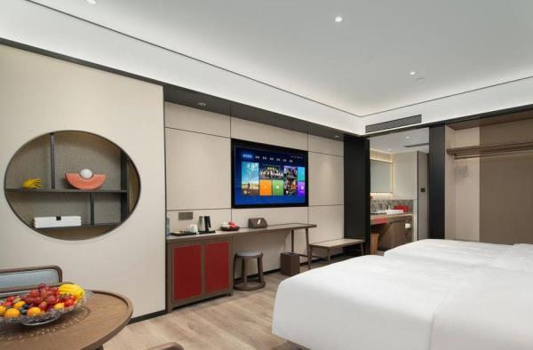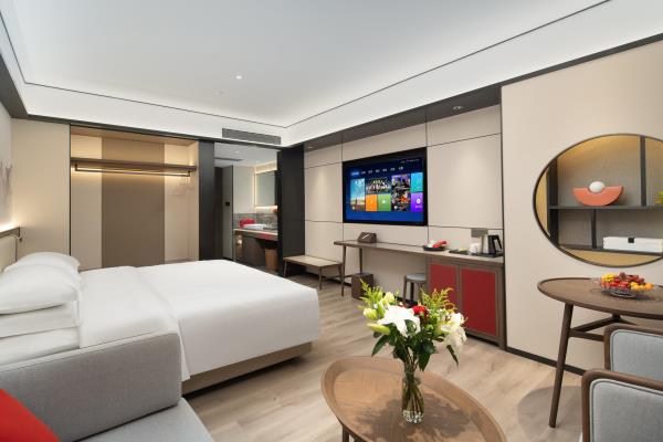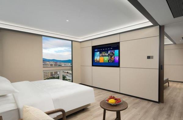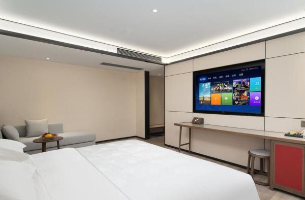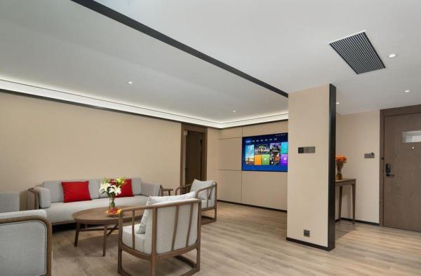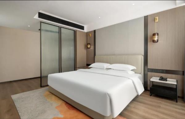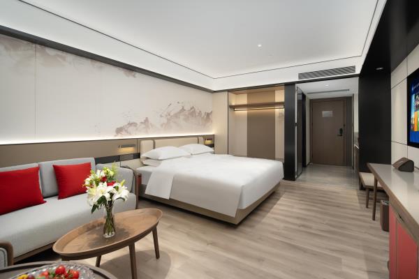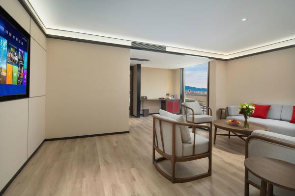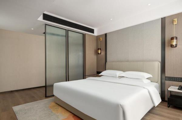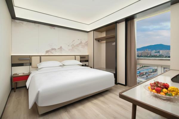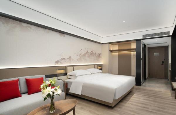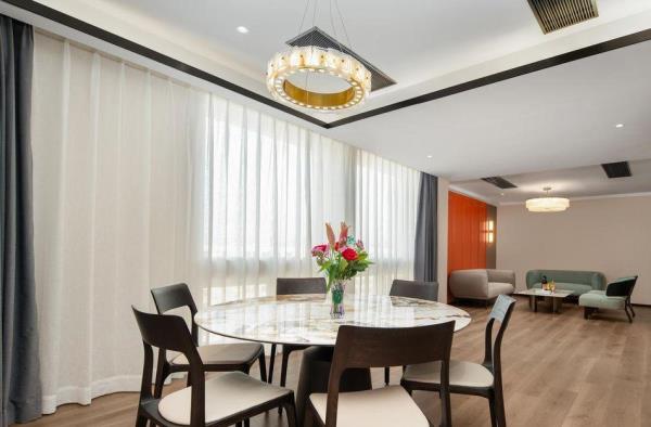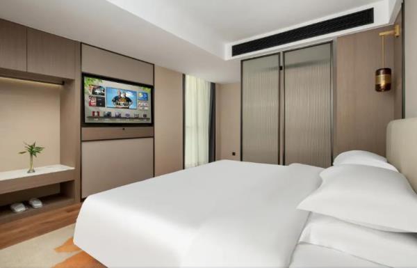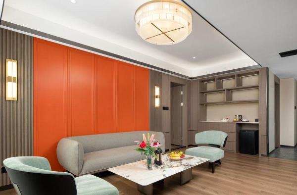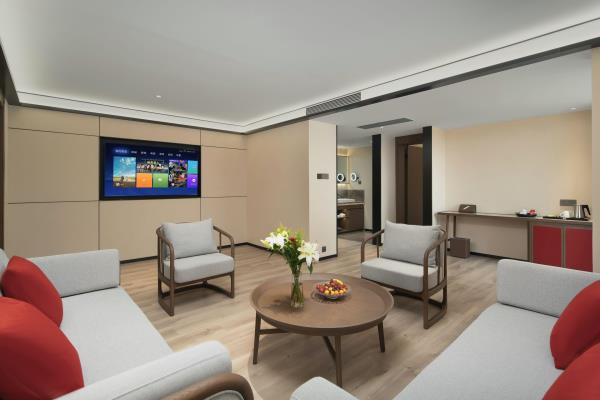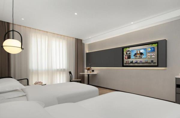 酒店位于中国内衣名地汕头市谷饶镇,毗邻潮阳高铁站,地理环境优越。酒店由上海知名设计师团队设计升级,精心打造现代轻奢型商务客房、设计典雅、精致细腻、智能客控,舒适的工作空间,以及高速网络、健身房、自助洗衣房、棋牌娱乐场所、免费停车场更有新能源充电桩等,具有浓厚潮汕特色的自助早餐厅,菜品丰盛的美味早餐,更有潮汕特色粿条以及潮汕可以打球的Q弹牛肉丸;让每一位入住酒店的宾客尽情享受一场奢华、高效、轻松的生活体验,是您来汕商务旅居的优选之地。