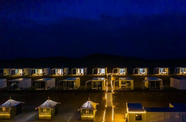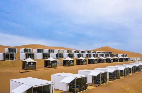 营地以房车露营,帐篷露营为主,地处腾格里沙漠,地理位置优越,交通便利,让入住的顾客感受到深入到腾格里沙漠腹地的新奇体验。营地自开业以来,备受好评,并迅速成为中卫具有人气的沙漠露营地,吸引无数游客及户外爱好者前来。同时,更有明星同款下午茶及浪漫的烛光晚餐可供您选择。更有沙景餐厅可同时容纳百人就餐,避免刮风下雨给您带来的用餐困扰。这个被上天偏爱的地方,没有条条框框的限制,浪漫的情调都被大自然无限放大。无需刻意寻找,随手一拍就是大片。