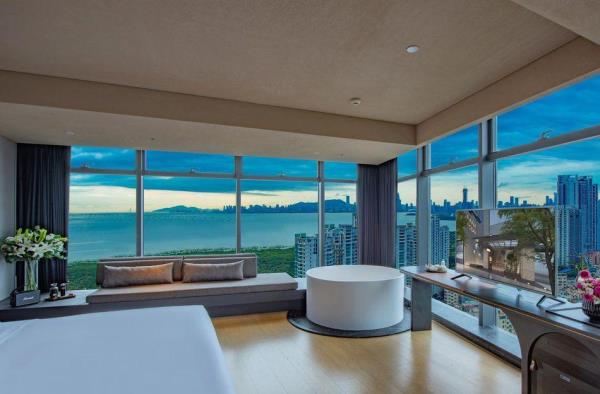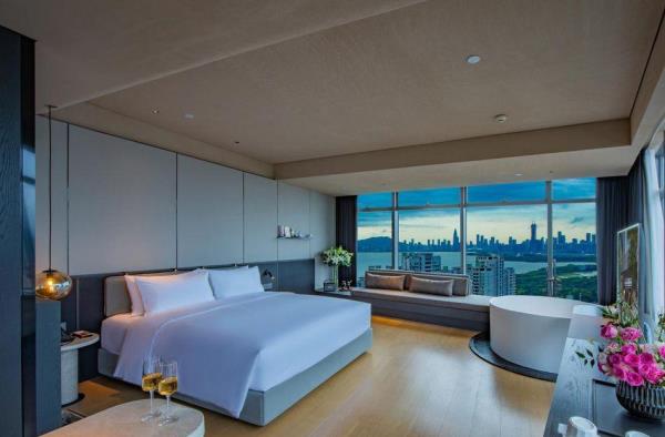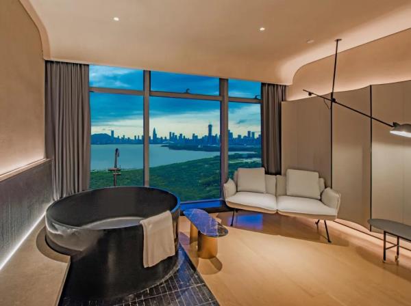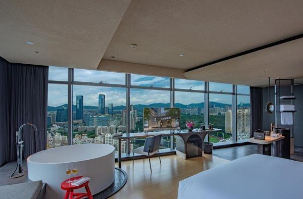 酒店坐落于深圳市福田区CBD中心,酒店邻近KKONE时尚购物商场及CT Mall,集购物、餐饮、娱乐等为一体的大型综合商业体,酒店周边就是高档商业大楼集中区,NEO大楼、招商大厦、深业泰然大厦、海松大厦等写字楼,距离深圳国际会展中心约8分钟车程,酒店邻近地铁7号线,步行约10分钟。酒店是深圳市艾垦酒店管理有限公司旗下的高端酒店品牌,其设计理念是以追求符合当代城市人的美学生活方式为主题。在滨海行政房,蓄上温热的40度,让您沉浸在窗边浴缸里清心静体,举杯邀明月,坐看云起时。