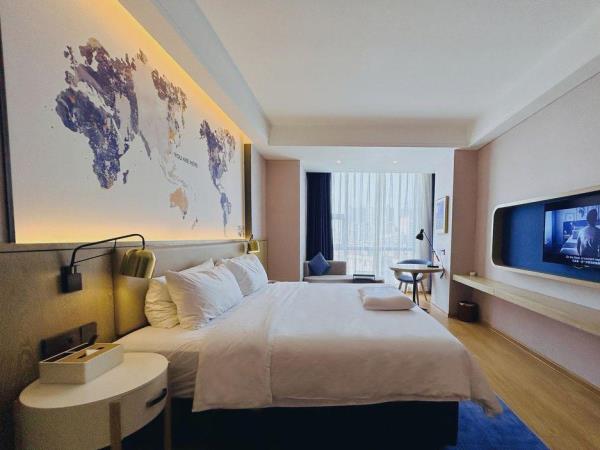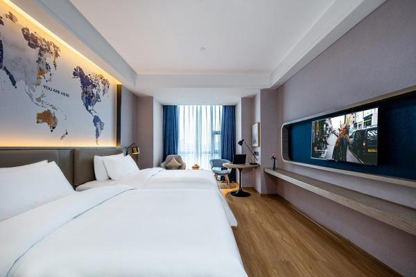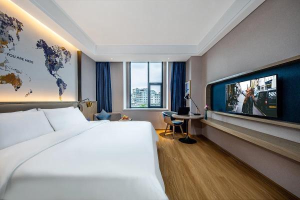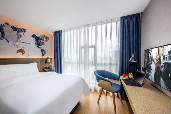 酒店坐落于潮汕公路粤运中心广场旁,地处潮州新中心,毗邻大型商业广场—潮州财富中心,陶瓷商业城就在附近,人民广场和市政府直路到达。配套130平米,容纳100人会议室;自助洗衣房、健身房和旅游书吧免费试用;雅致茶艺室和世界精酿文化带来极致享受;中西自助早餐,特色菜品与本地小吃激活您的味蕾,元气满满!非临街物业,闹中取静,给您疲劳的身体在安静舒适环境中充满电。交通便利,超大停车场,满足自驾需求。潮汕高铁站公交K1(直达)和K2直达门口(粤运中心站),潮汕机场大巴公交直达门口(粤运中心站)。打车30分钟左右均可到达。商务出差,陶瓷商业城步行即达,上百家陶瓷商为您展示潮州瓷器的全面型,出差旅游挑上精美的本地特产。穿过斑马线即到潮州财富中心写字楼。闻名景点,牌坊街、古城、开元寺和湘子桥,门口公交均可直达(南桥市场),自驾15分钟左右即达,打车15元左右,门口共享电动车悠哉悠哉逛潮州。特色美食,附近大街小巷能让味蕾来场旅行,本地特色:牛肉火锅,官塘鱼生,潮汕生腌,甘草水果,猪脚圈,生炸鸡翅,咸水粿,粿条汤......穿过马路到财富中心,品牌美食让您大快朵颐。娱乐项目,亲子乐园让孩子流连忘返,大型KTV秀出您的歌喉,沐足按摩去除一身疲劳,三五好友共聚酒吧畅饮,把酒言欢。夜宵文化满足精彩的收尾。凯里亚德酒店为锦江酒店旗下海外品牌,围绕“旅行、探索、世界”三个关键词,为客人打开探索之窗,提供独特的法式产品设计。推出世界空间、美食世界、精酿文化、旅行书吧、舒适助眠五大核心卖点,结合百宝箱、箱洁衣理等六大极致服务,致力于打造舒适的入住体验,让客户切身感受凯里亚德所倡导的生活态度,“活在当下,尽享此刻”!