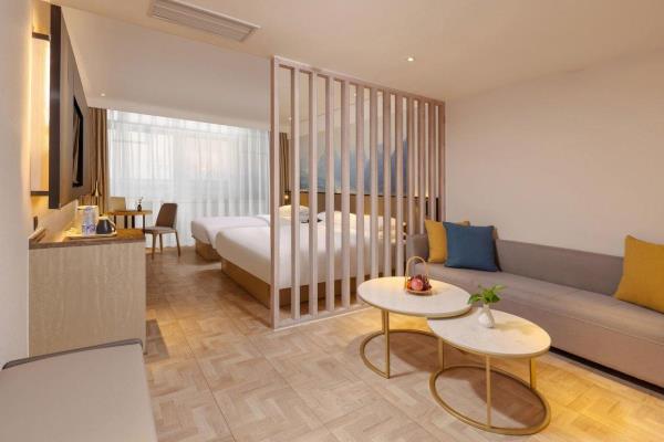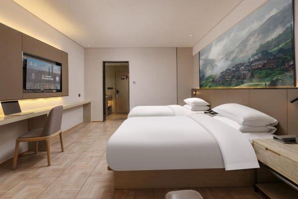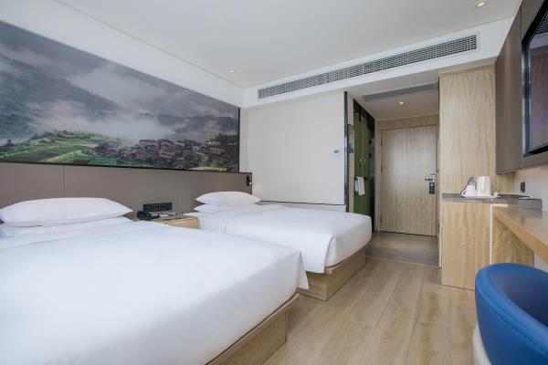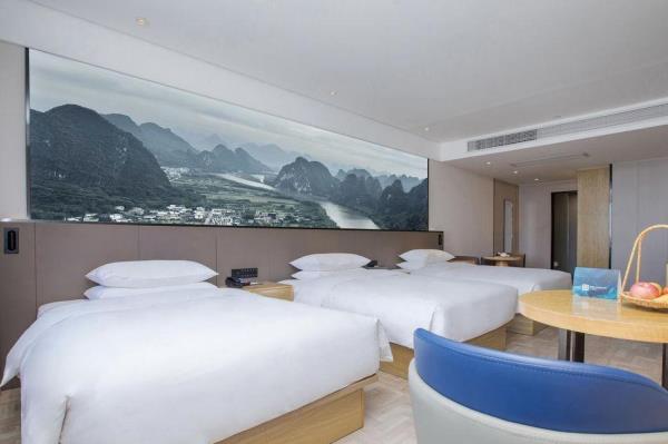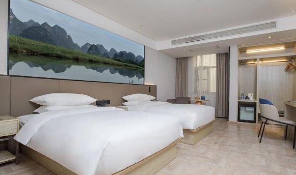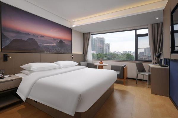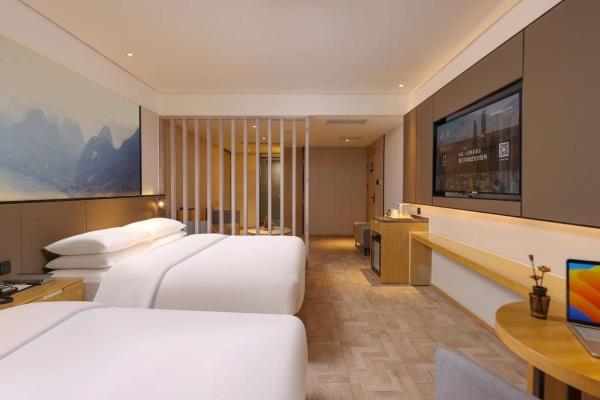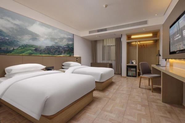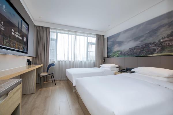 自在如行,抵达美好!美豪酒店选址闹中取静,毗邻恒大广场,位于桂林北站出口验票闸机正对面步行至酒店约3分钟即可到达,周边有南城百货(桂林北站店),桂林叠彩万达广场,配套齐全交通便利;前往中心广场、正阳步行街、两江四湖、象鼻山景区、东西巷约20分钟车程。附近的高铁北站和汽车北站可随时前往阳朔西街、龙脊梯田,是您商务旅行观光中一个理想的下榻之所。酒店设有童趣的亲子房、极简的双床间和大床房,并配有洗衣房、早餐厅,健身房,会议室,大型停车场。装修风格简约自然,一应俱全的酒店硬件和贴心细腻的服务,定能带给您一个高品质,舒适的住宿环境,让您享受每一个自在旅途!