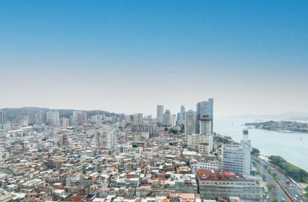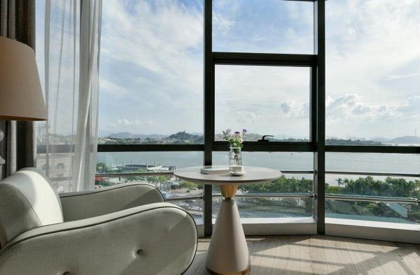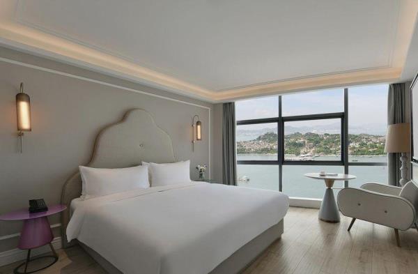 厦门中山路轮渡码头美居酒店地处厦门繁华区鹭江道,轮渡鼓浪屿正对面,与鼓浪屿遥遥相望。酒店装修风格独特多样,以海洋为背景,用白色贯穿主题,蓝、白相间,凸显海的气息和韵味。