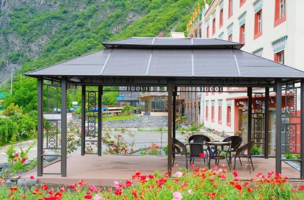 理县古尔沟美谷温泉酒店,坐落在风景如画的理县古尔沟风景区。这里被雄伟的雪山、茂密的森林和清澈的溪流环绕,空气中负氧离子充足,美景如画。 温泉养生:酒店有一眼天然温泉汤池。源自神峰山下的地热泉眼,水温恰到好处,富含多种对人体有益的微量元素。在这里,您可以尽情享受温泉带来的放松与疗愈,舒缓疲劳,滋养肌肤,让您感受到身心的愉悦。 舒适住宿:酒店提供多种房型选择,满足不同客人的需求。每一间客房都精心设计,装饰典雅,环境舒适。房间内设施齐全,从柔软的床铺到齐全的卫浴设施,无一不体现着酒店对入住舒适度的追求。推开窗户,您可以欣赏到壮丽的雪山景色或宁静的森林风光,让您在自然的怀抱中尽享舒适的睡眠。 贴心服务:酒店的工作人员以热情、专业的服务态度,为每一位客人提供贴心的关怀。从您踏入酒店的那一刻起,就能感受到家一般的温暖。无论您是酒店内的生活(如叫餐服务)还是旅途的路线以及补给(如路线咨询等)工作人员都会竭尽全力为您提供优质的服务,让您的度假之旅更加完美。 周边景点:酒店周边有众多美丽的景点可供游览。如毕棚沟风景区,米亚罗风景区,霸王山,鹧鸪山滑雪场,丘地藏寨等,大部分的景区车程都在10分钟左右,十分便捷。冬季的鹧鸪山滑雪场十分热闹,十月的米亚罗红叶十分壮丽 ;霸王山可以看山看水安逸露营。一路探赏神秘的雪山和原始森林,感受大自然的魅力;这里还可以体验当地的民族文化,参与篝火晚会,欣赏藏族的歌舞表演。 理县古尔沟美谷温泉酒店,是您放松身心、享受度假的理想之地。在这里,您可以与自然亲密接触,感受温泉的滋养,品尝美食的诱惑,享受贴心的服务。快来这里开启一场难忘的度假之旅吧!