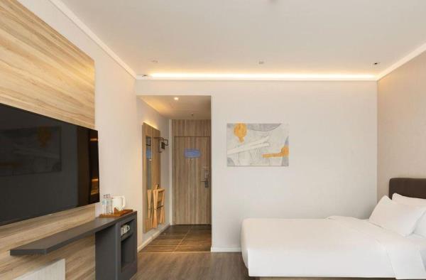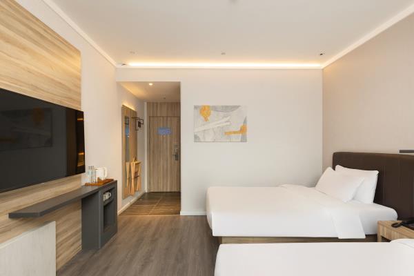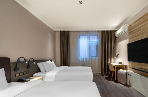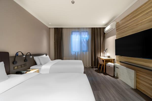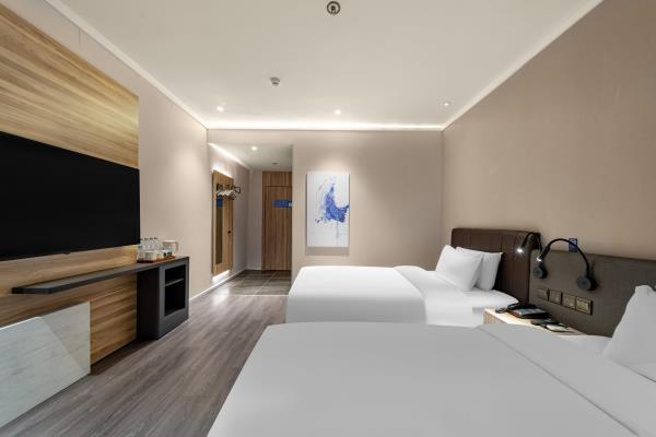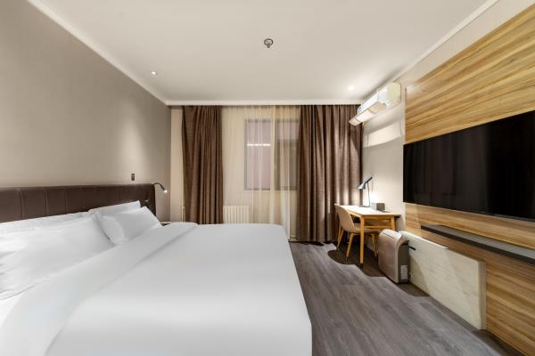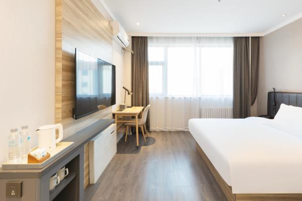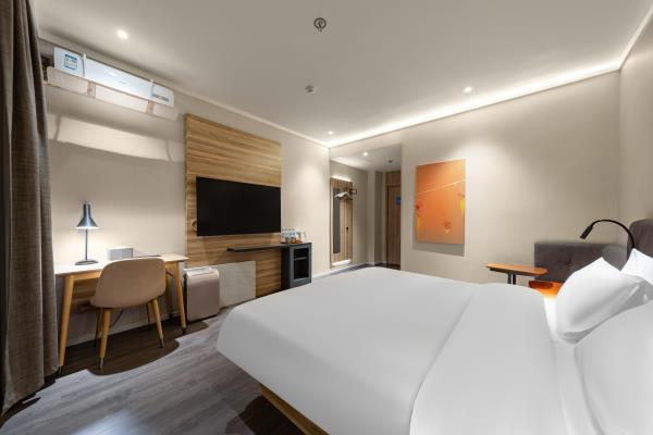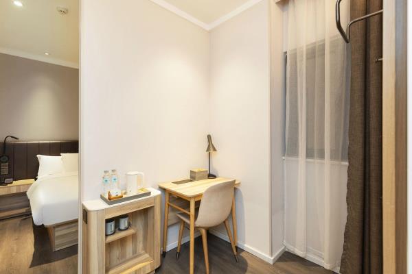 酒店位于县西巷与泉城路交叉口,具体地址【历下区县西巷86号】。酒店毗邻享誉世界的中国古代名胜——大明湖公园。周边贵和购物中心、恒隆广场、银座购物中心、世茂购物广场等大型购物中心汇聚。南邻泉城路商圈,紧靠具有“济南性格”之称的老街芙蓉街,距火车站、长途汽车站仅需15分钟车程,距济南遥墙国际机场45分钟车程。酒店紧靠泉乐坊商业街,周边多条公交线路停靠,交通四通八达。酒店客房时尚简约,拥有豪华的卫浴设施、舒适的睡眠环境、时尚的家具等,并能在大堂区域提供上网。酒店同时配备会议室及高速WiFi,可满足住店客人会议、会客、上网、阅读、休息的需求,是您商务出差、旅游的理想下榻酒店。