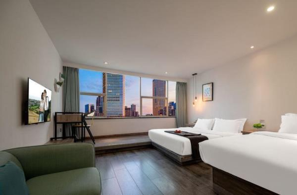 酒店位于重庆市渝中区解放碑都市广场A座17层,山水环绕,拥有丰富的历史文化底蕴,洋溢现代都市气息。酒店现代舒适、充满活力、四通八达,是国内外宾客的理想下榻酒店。酒店坐拥可欣赏嘉陵江一线江景,每间客房均配有设施齐备的家用电器,高品质的客用物品。无论是商务居住或短途旅行下榻,都能使顾客身处豪华优雅的环境中得以放松和休整。周边景点:2分钟左右则是重庆地标解放碑、国泰艺术中心、八一好吃街等,8分钟到8D魔幻洪崖洞夜景、戴家巷、魁星楼、长江索道。交通便利:近2号线临江门站,机场巴士直达、机场、火车站可直通地铁,交通十分便利。停车场:即都市广场地下停车场、国秦艺术中心停车场 ,停车便利。