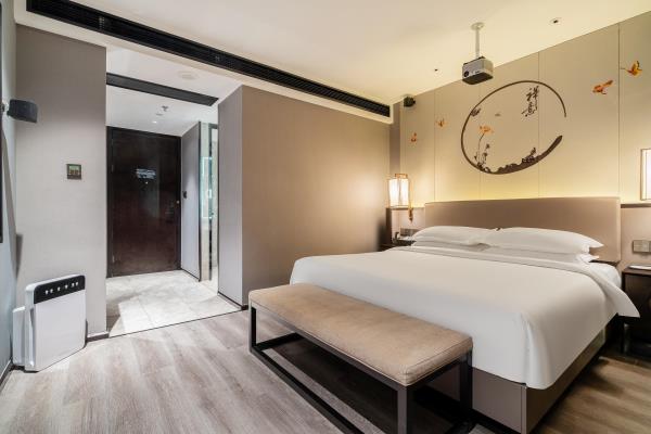 酒店位于杭州市西湖区余杭塘路,与龙湖天街,5号地铁零距离接轨,地铁5号线蒋村地铁站B出口出门即到。周边有西溪银泰城,浙江大学,学军中学,浙江交通设计研究院等公司,距离杭州“三西”之一的西溪国家湿地公园只有10分钟的步行路程,主要景点有泊蓭、深潭口、厉杭二公祠、高庄、秋雪庵等众多网红打卡点。距离机场有19号地铁线直达。本店是丽呈集团倾力打造的以新中式为特色的高标准连锁酒店,心向阳,悦溪泉,纳百川,汇意東方,择谷而栖,我们探索城市每个角落的肌理与内涵,发现惊喜、感受生活,我们致力打造『体验至上』的『情景人居』! 酒店设有健身房、自助洗衣房,配备烘干机、挂烫机等贴心服务设备;英国“Seven Plus茶语系列”洗护产品为您洗尽旅途疲惫;零压天然乳胶护脊床垫助您安然入梦;源自高山云顶、山泉浇灌的西湖龙井,予您一刻浮闲!