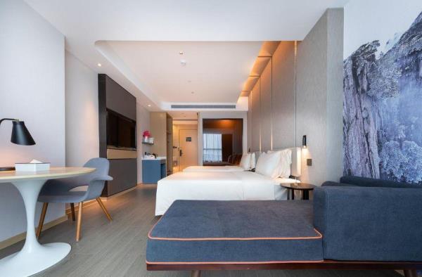 深圳福海国际会展中心亚朵酒店位于宝安区福海街道凤塘大道福洪工业园,地处深圳市重点规划片区会展新城内,有着海上田园游乐园,西部海上田园风光生态园及大王山景区等配套,周边交通便利,吃喝玩乐一应俱全,距离深圳国际会展中心直线距离约2公里,穗莞深城轨-福海西站约1.4公里,11号线塘尾站约2公里,沙井地铁站以及京基百纳大型商场约3公里,广深沿江高速口约为3公里,充分满足您商务出差,休息游憩的需求。酒店设计理念是以阅读和人文摄影为主题,高品质的客房产品+细致温馨的服务,给您带来“自然,静谧,温暖,朴实”的健康生活方式。所有客房均采用普兰特系列优质床品,中央空调,全套阿芙精油精华洗浴用品,百兆光纤,全WIFI覆盖。并设有相招(餐厅),共语(多功能会议室),出尘(洗熨烘干自助洗衣房)以及竹居(阅读会友书吧),为您提供一个自在,放松的居停空间。
