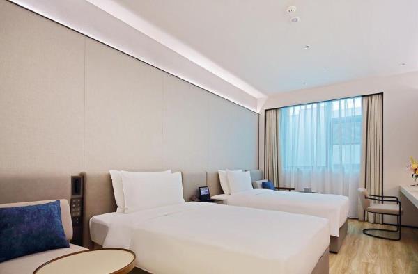 酒店位于上海市虹口区曲阳路,处于中山北一路和曲阳路交叉口;酒店到复旦大学,财经大学里,同济大学步行,岳阳医院,和平眼科医院,肺科医院,五角场万达都很方便,酒店正对曲阳百联,酒店步行至地铁站3号线大柏树站、8号线曲阳路站约15分钟,可乘坐地铁直达虹口足球场、人民广场等重要地标。酒店配备免费停车场、健身房、会议室、自助烘干洗熨洗衣房、室外休闲区、阅读会友空间,可供客人休憩。酒店客房内设有先进的智能化客房电子设备/智能小度音响,让您拥有惬意的住宿环境,享受每一段自在的旅程。