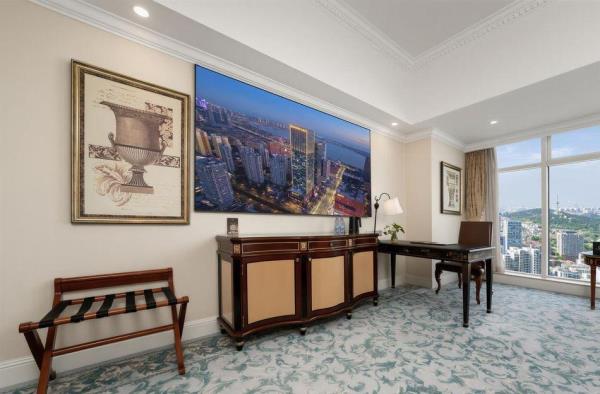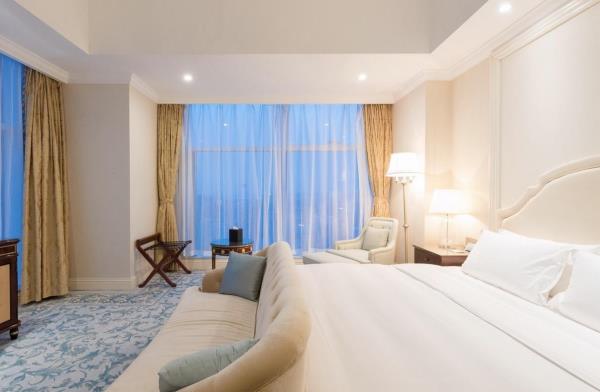 酒店位于西海岸新区CBD核心地段,井冈山路157号健信商业,稳坐青岛市“一小时”经济圈内。酒店交通便利,距金沙滩约10分钟车程,海湾大桥约20分钟车程。酒店毗邻黄岛区东区政府、中国石油大学、青岛理工大学;与酒店一步之遥的利群集团旗下金鼎综合性大型购物广场,从酒店步行1分钟内到达;步行约5-10分钟即可到达佳世客、家佳源购物广场,餐饮、休闲、娱乐便捷。酒店客房采用经典的巴洛克装修风格,别具匠心,配以多元化个性服务。同时独居特色的海景客房,将美丽海景尽收眼底,让您体验云端的感受。酒店拥有中西餐厅、大堂酒吧等、多功能厅及会议室,可满足各种宴会和会议的使用需求。酒店为全服务高端酒店,设计精美细致,充分融入周边环境,提供非凡感官享受,展现亲情服务理念的迷人魅力,为客人创造温馨舒适的难忘入住体验,是高端会务和家庭休闲度假的上优之选。